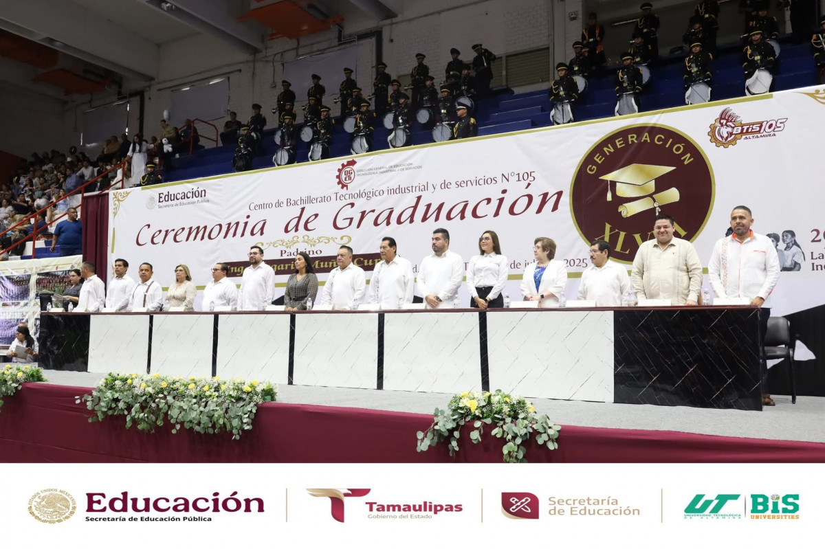 La Universidad Tecnológica de Altamira (UTALT) participó con orgullo en la Ceremonia de Graduación de la Generación XLVIII del Centro de Bachillerato Tecnológico Industrial y de Servicios No. 105.