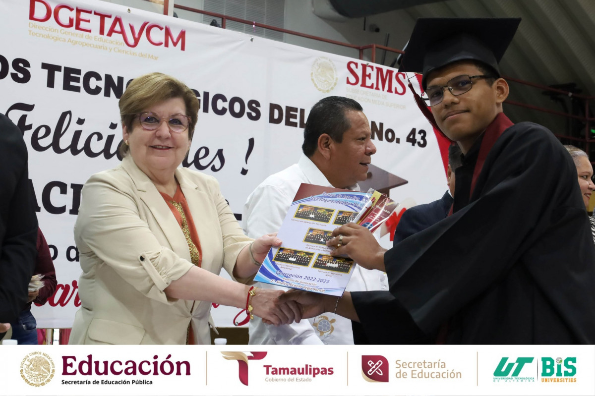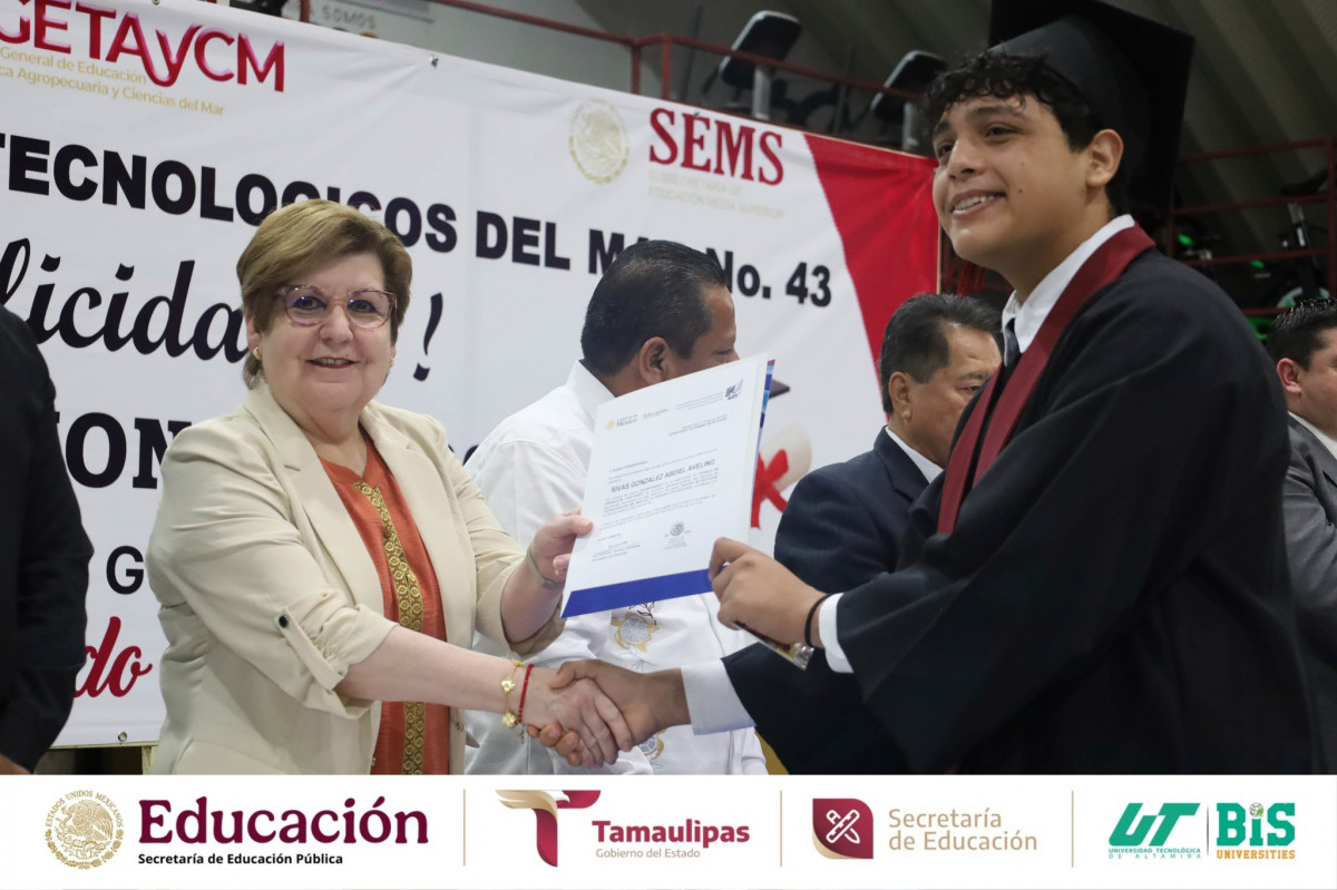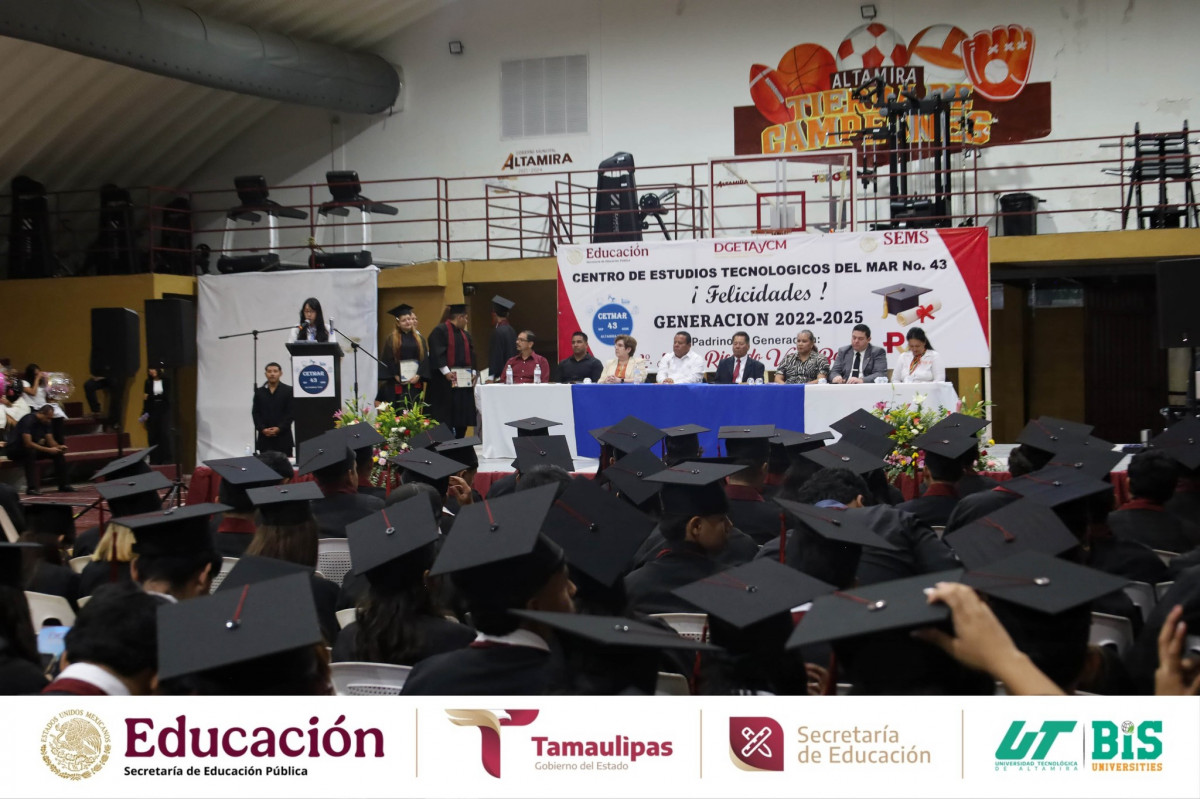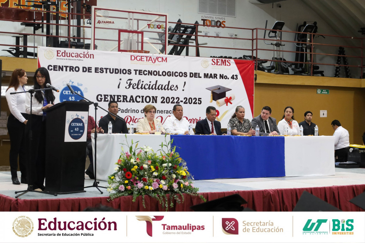 La Universidad Tecnológica de Altamira (UTALT) tuvo el privilegio de asistir como invitada de honor a la Ceremonia de Graduación de la generación 2022–2025 del Centro de Estudios Tecnológicos del Mar No. 43 (CETMAR 43), realizada el 16 de julio en el Auditorio Municipal «Reynaldo Castillo Portes».