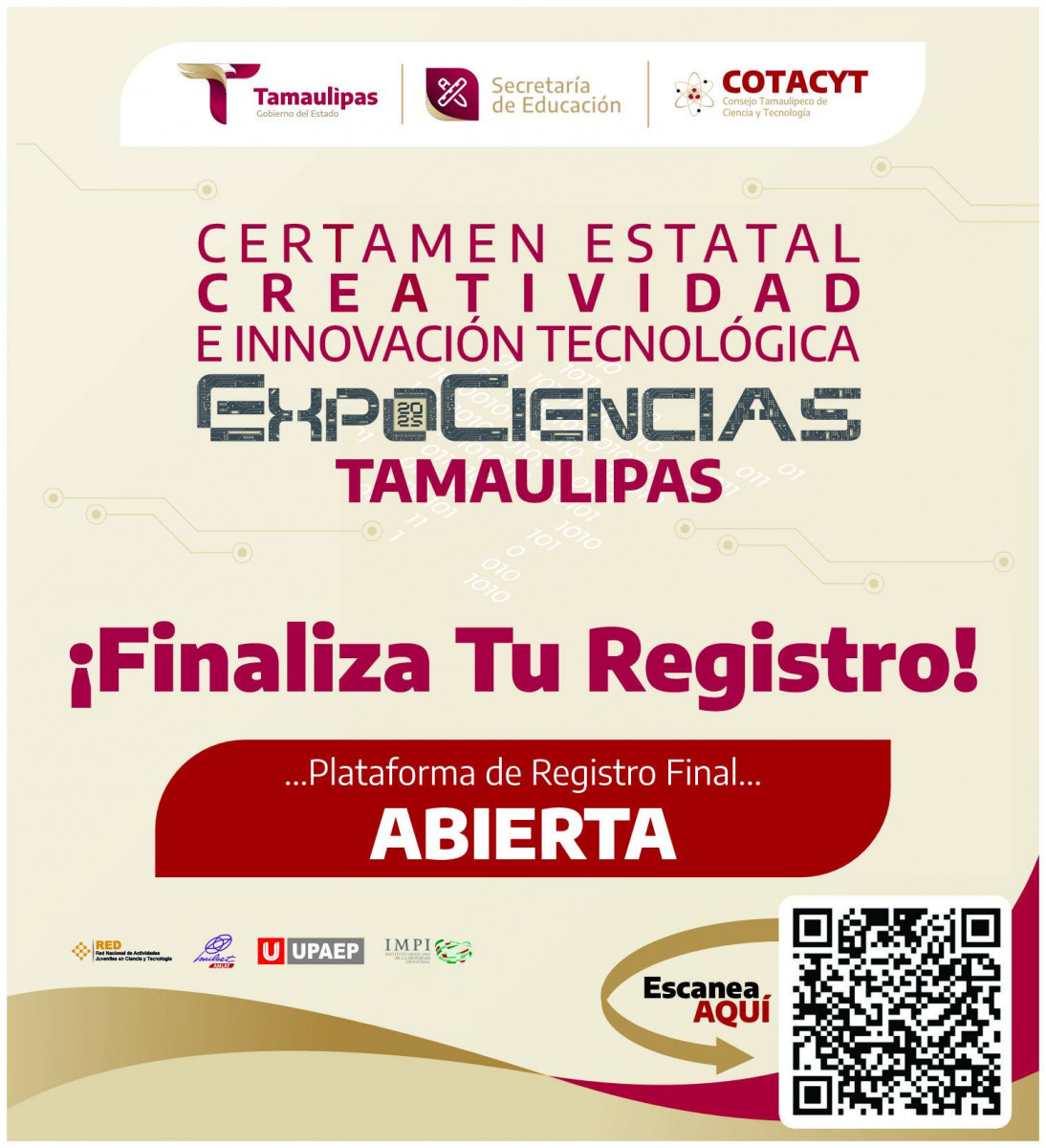 ¡No te quedes fuera! Sé parte del Certamen Estatal de Creatividad e Innovación Tecnológica – ExpoCiencias Tamaulipas y demuestra tu talento.