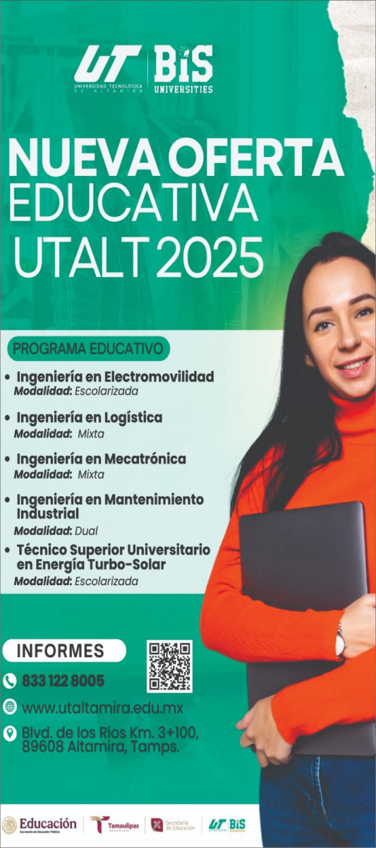 Debido a la gran demanda, la Universidad Tecnológica de Altamira abre su último periodo de inscripciones, el cual cierra este 04 de septiembre