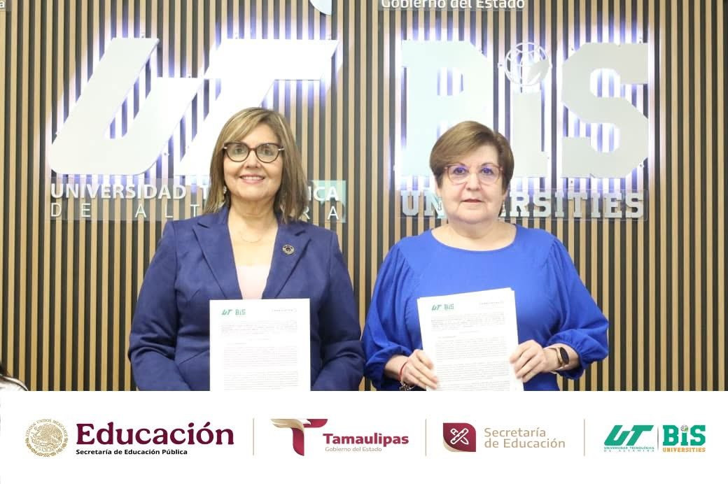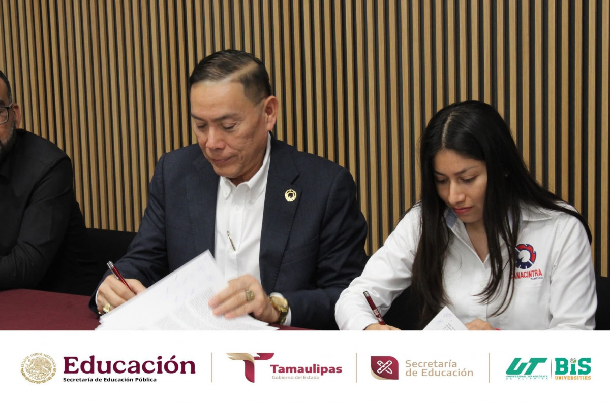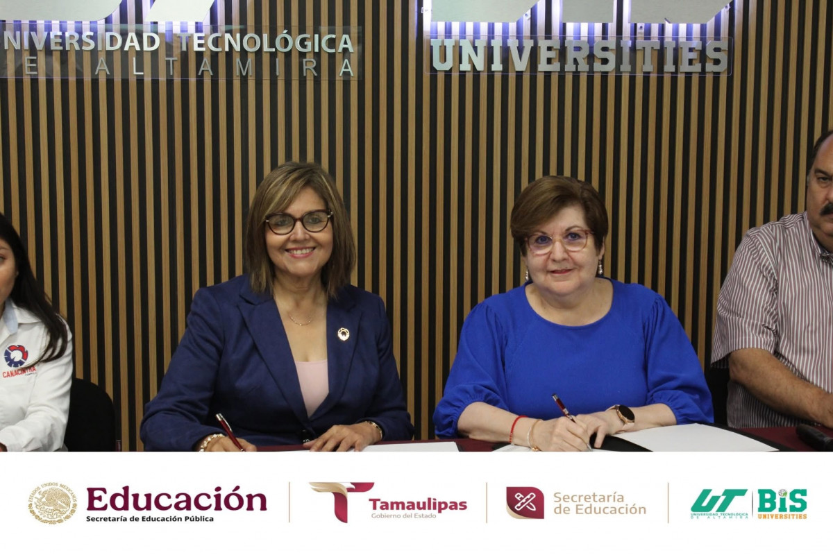 Este martes se llevó a cabo la firma de convenio entre la Universidad Tecnológica de Altamira y la CANACINTRA Tampico, encabezada por su presidenta, la C.P. Cleotilde Treviño Castillo.