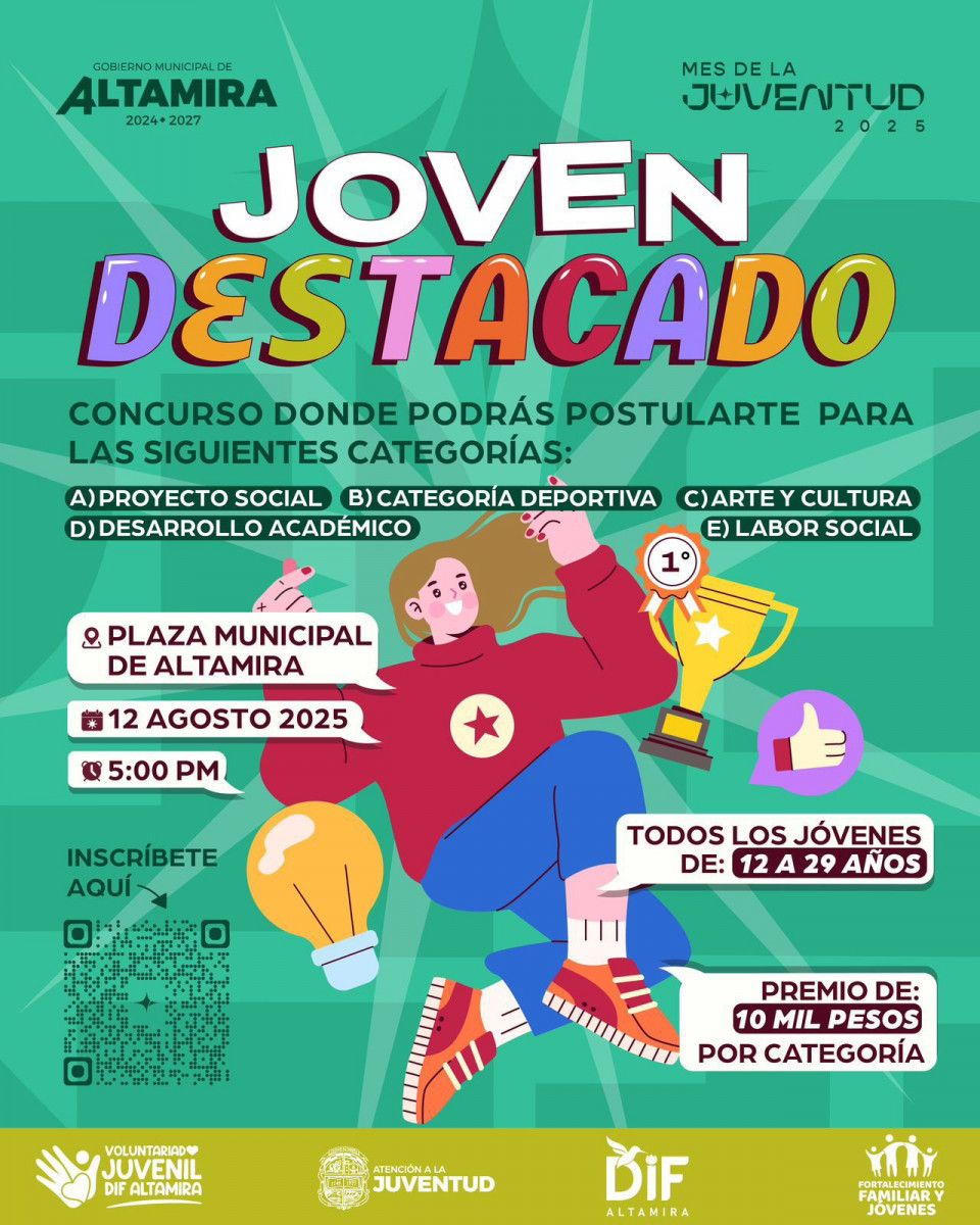 Convocado por el Gobierno Municipal de Altamira, en el marco del Mes de la Juventud, participa y gana $10,000 pesos si tienes entre 12 y 29 años.