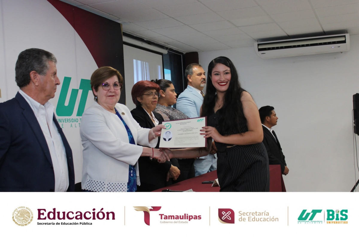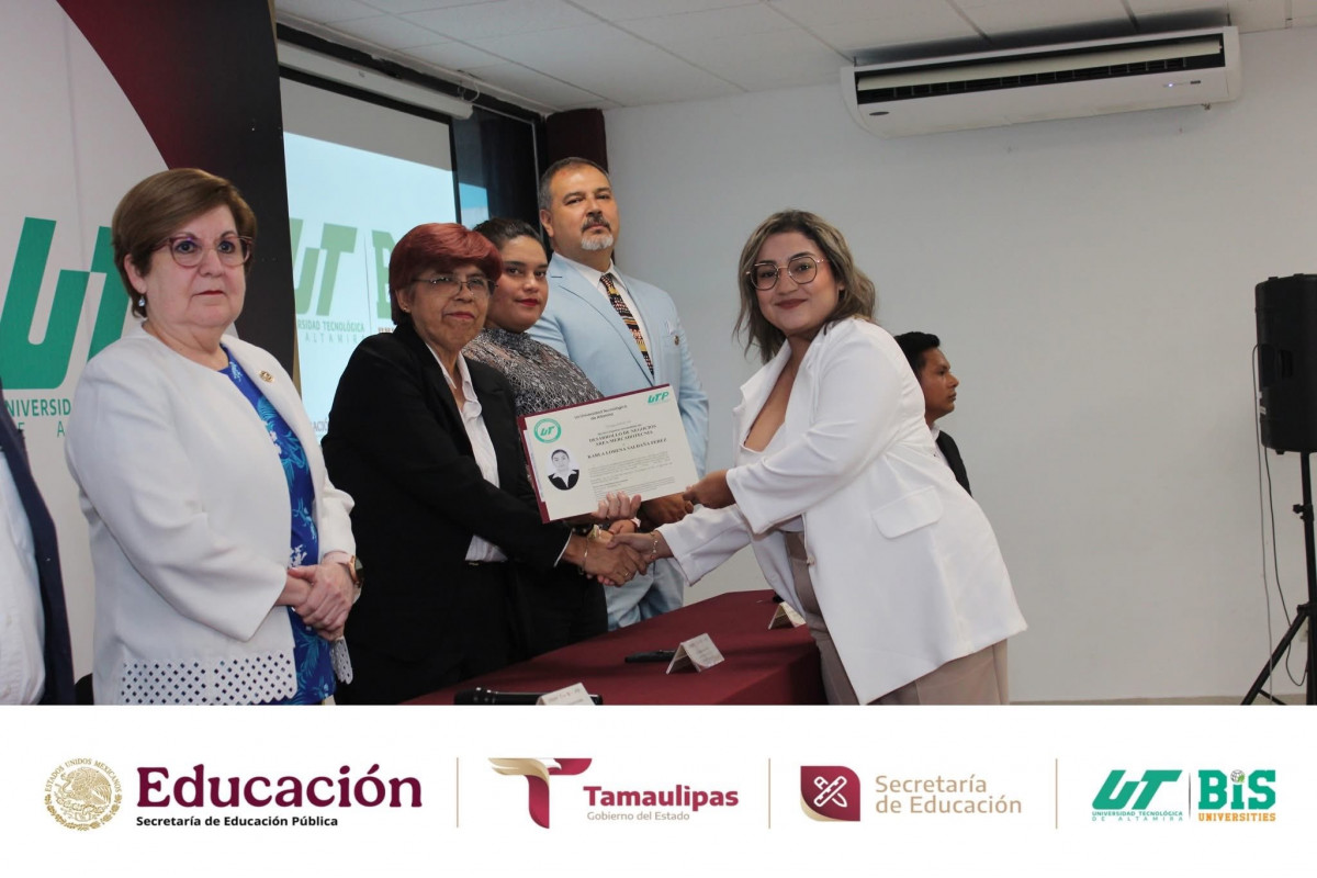 La Universidad Tecnológica de Altamira se enorgullece en celebrar la culminación de una importante etapa académica de nuestros Dragones, quienes recibieron sus títulos profesionales como Técnicos Superiores Universitarios en las distintas áreas de formación académica. La ceremonia se llevó a cabo el martes 26 de agosto a las 17:00 horas en el Auditorio del Edificio T de la UTALT, en Altamira, Tamaulipas.