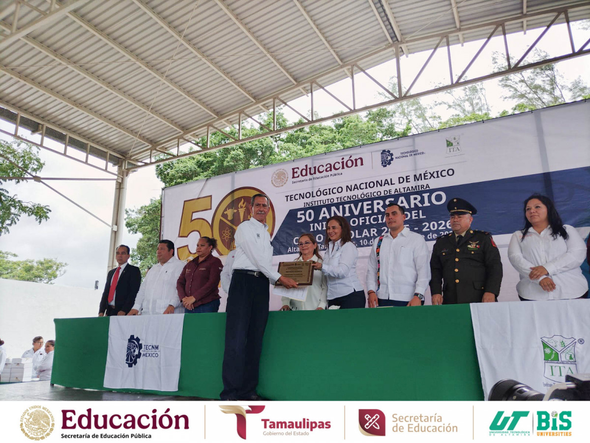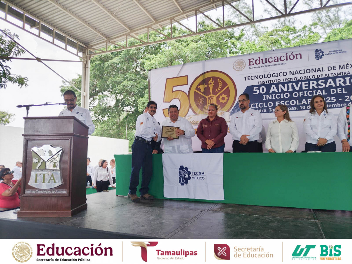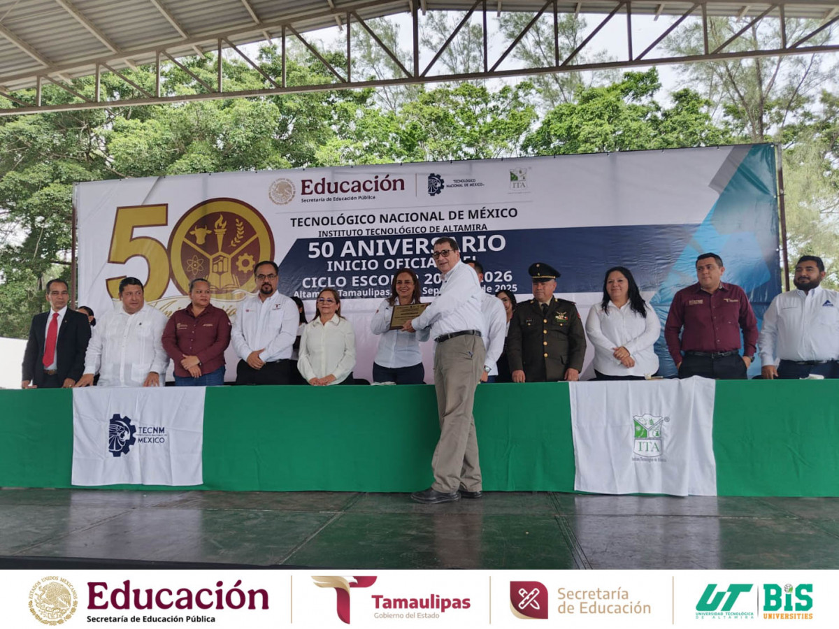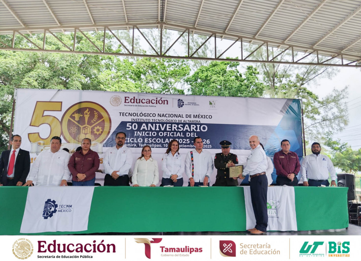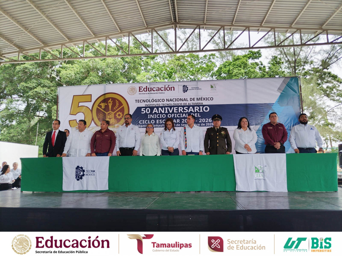La Universidad Tecnológica de Altamira (UTALT) tuvo el honor de asistir como invitada especial a la Ceremonia del 50° Aniversario del Instituto Tecnológico de Altamira, así como al inicio oficial del semestre Agosto–Diciembre 2025, un evento que marca medio siglo de compromiso con la educación y el desarrollo regional.