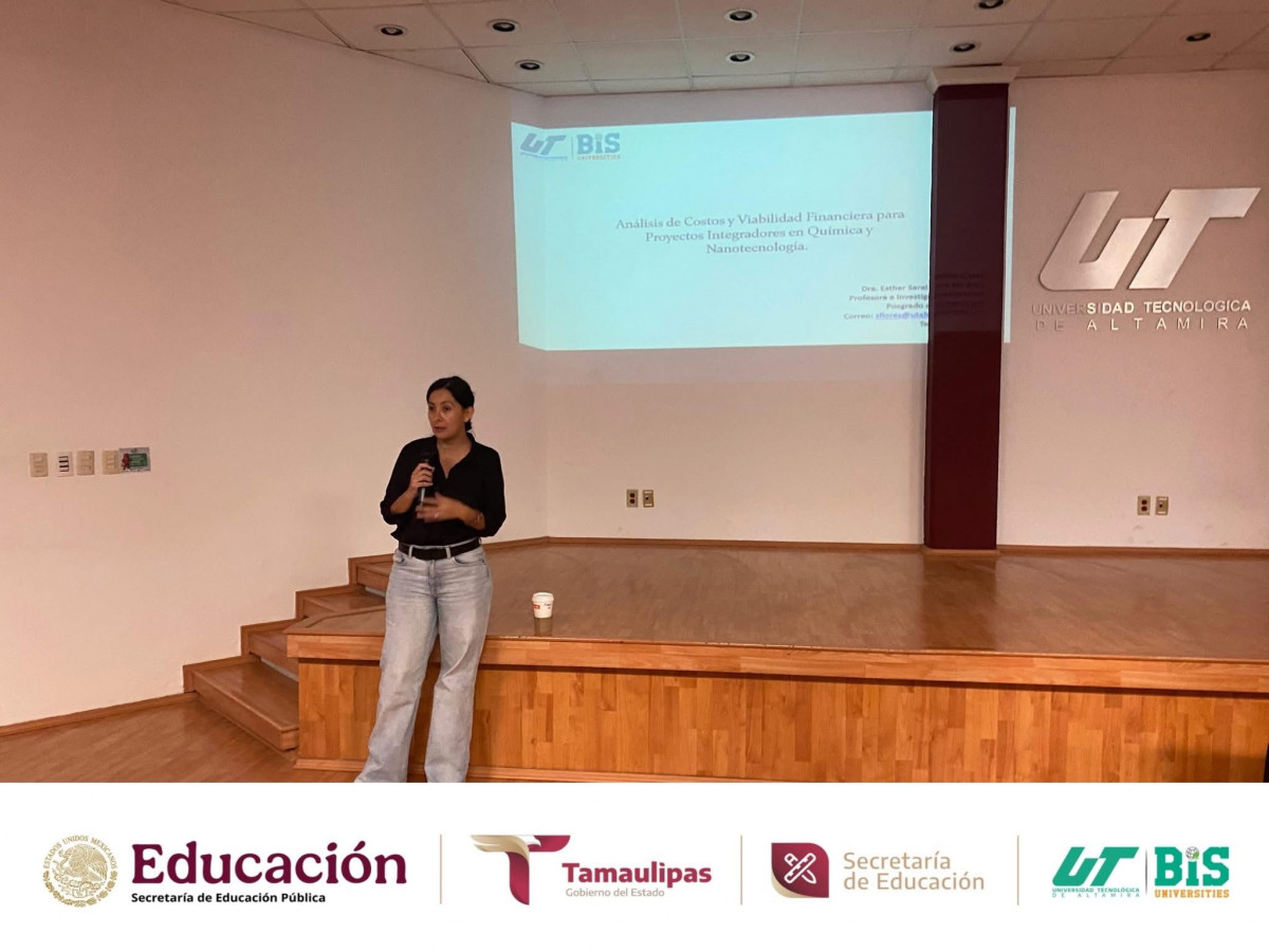 Estudiantes del programa educativo de Ingeniería en Química y Nanotecnología participaron en la plática “Análisis de Costos y Viabilidad Financiera para Proyectos Integradores en Química y Nanotecnología”, impartida por la Dra. Esther Saraí Castillo Flores, profesora e investigadora del área de Posgrado e Investigación.
