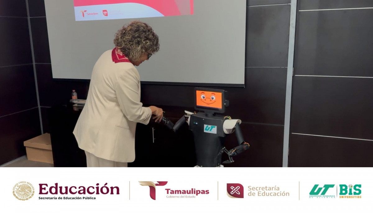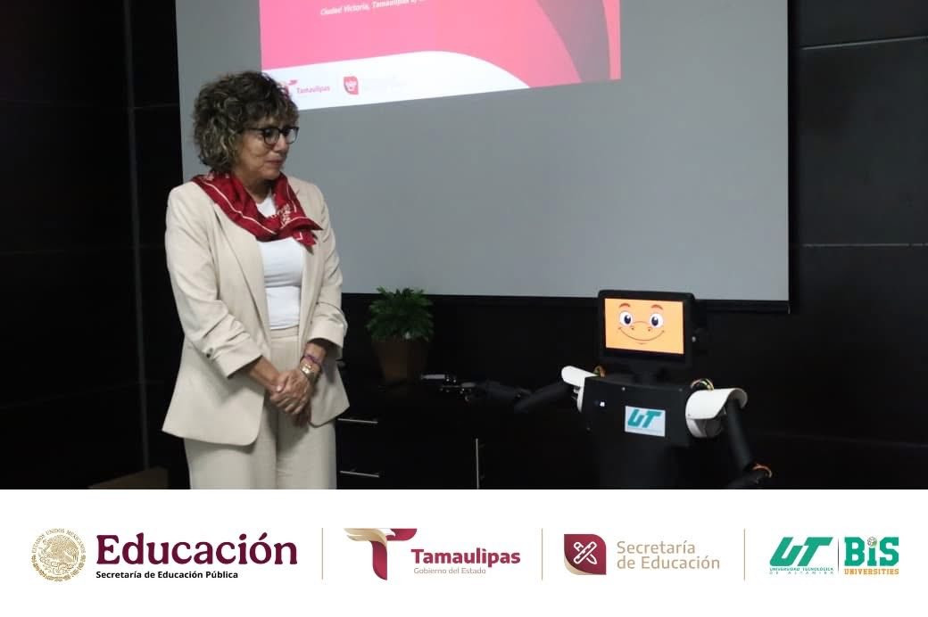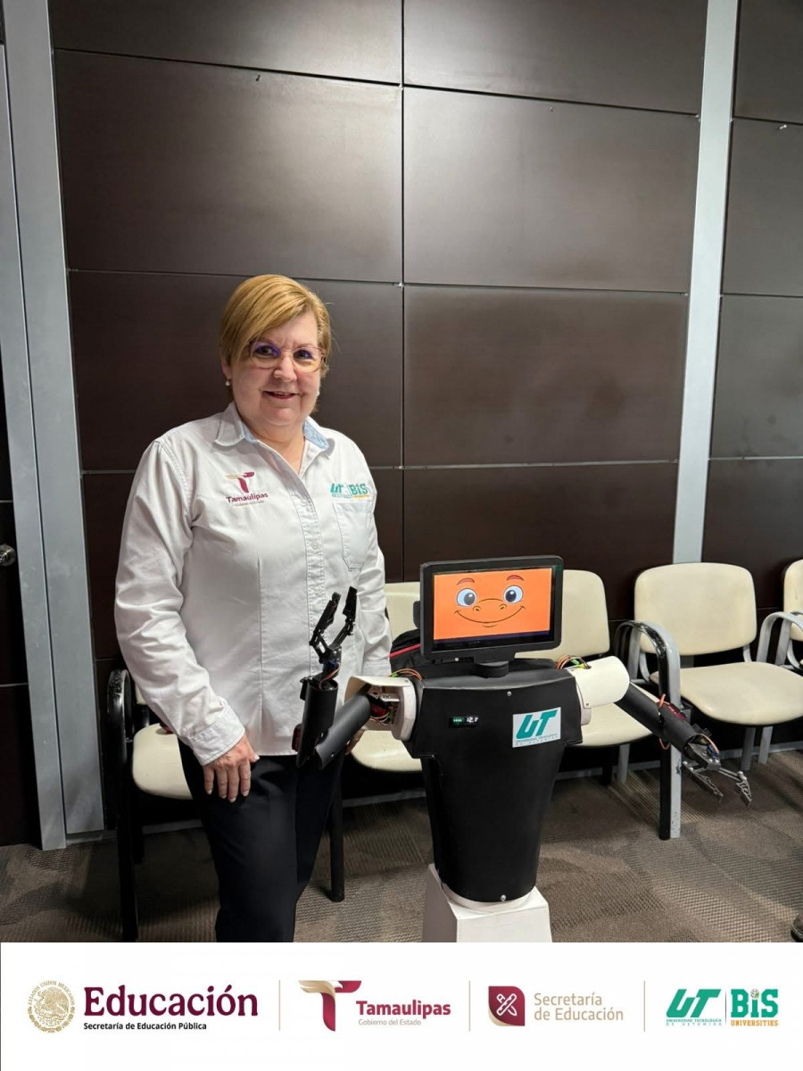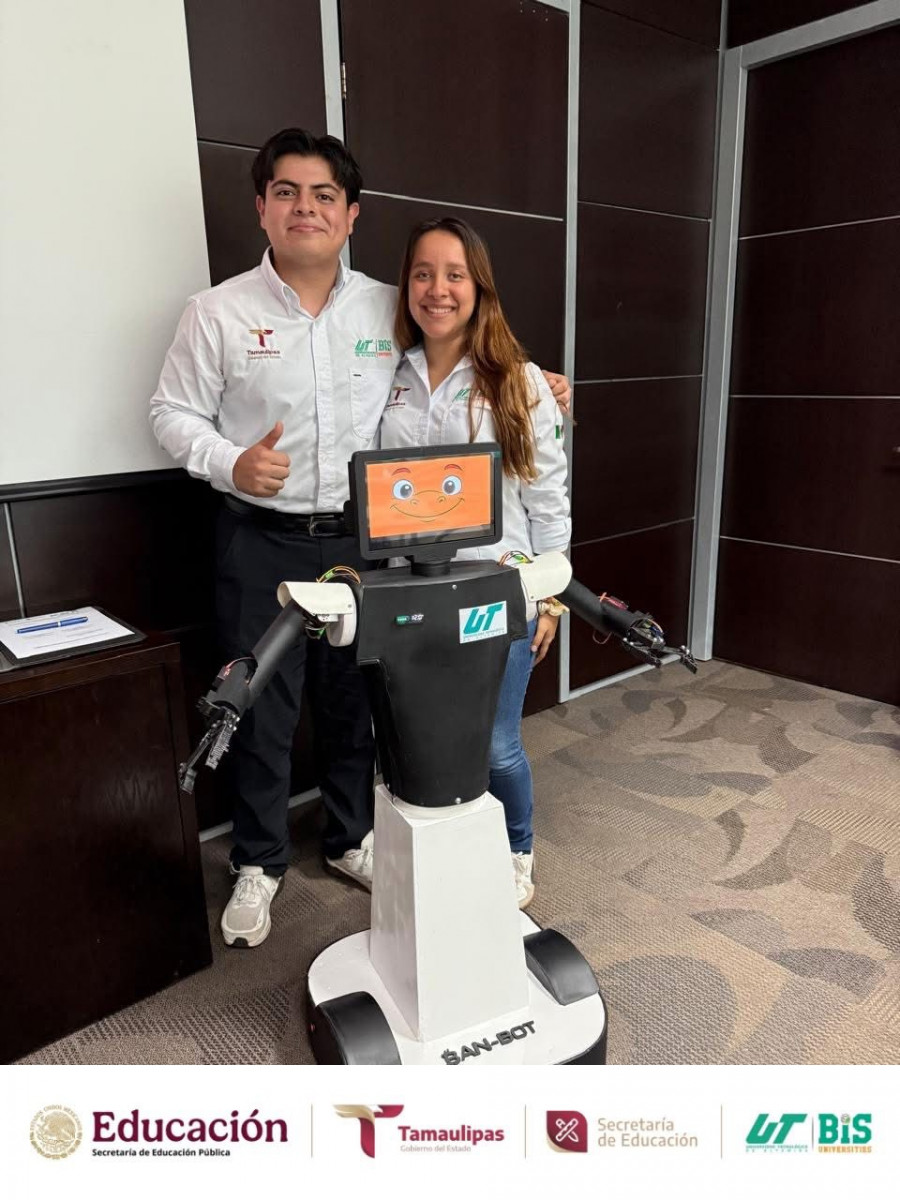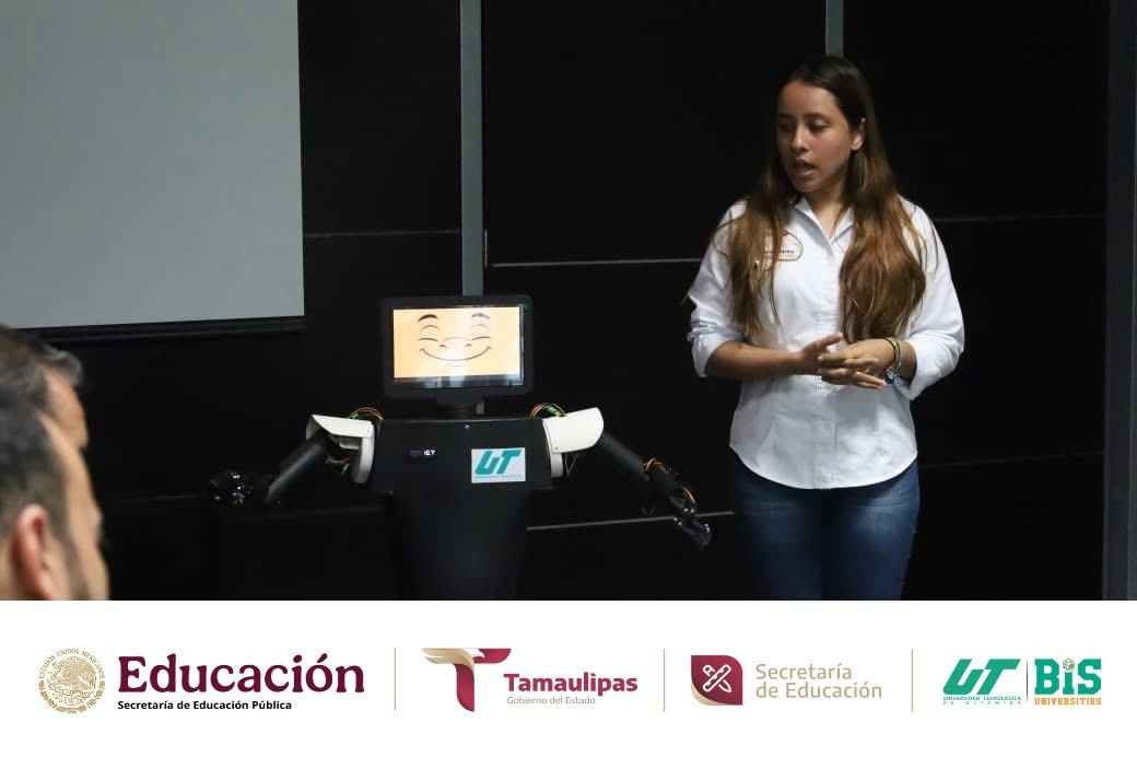 También estuvieron presentes los estudiantes destacados de Ingeniería en Mecatrónica de KID-IA y BAN-BOT, entre ellos Víctor Eduardo Acosta Villalón, Luis Jerónimo Loera Moreno y Rubén Alexander Rodríguez Muñoz, acompañados por su asesor, Mtro. José Antonio Rodríguez Ahumada, la directora del programa, Mtra. Mariana Soledad Centeno Sierra, y el Mtro. Abel Salas Leal; así como los participantes del proyecto BAN-BOT, Sofía Ximena Vargas Torres y Fernando Banda Rodríguez. Estudiantes que tuvieron la oportunidad de presentar a la SEBIEN estos proyectos destacados a nivel internacional.