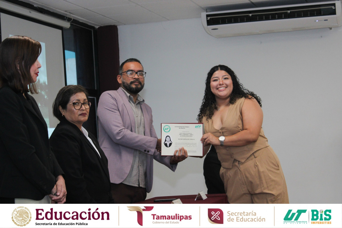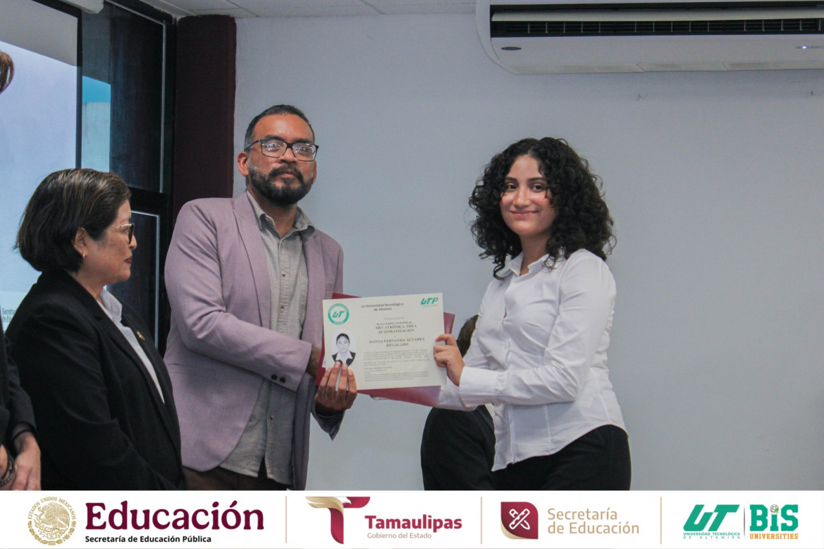 La rectora, Dra. Mara Grassiel Acosta González, dirigió un emotivo mensaje que resaltó el esfuerzo, la constancia y la dedicación de los egresados, quienes recibieron con gran alegría su título profesional de TSU en Mecatrónica, área Automatización.