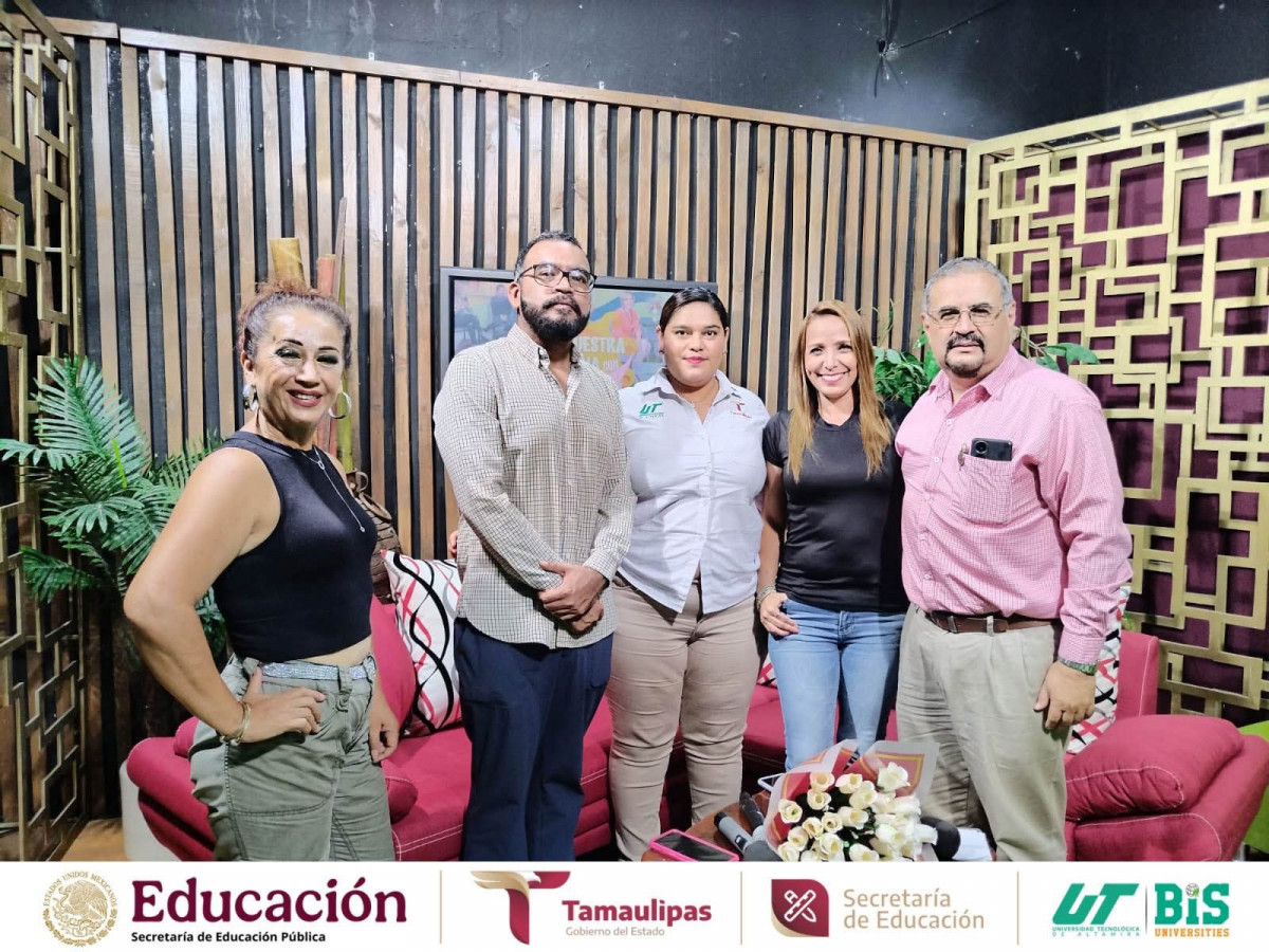 Durante la visita, también estuvieron presentes la Mtra. Mariana Soledad Centeno Sierra, Directora de Ingeniería Mecatrónica; el Mtro. Luis Guillermo Fernández García, Subdirector de Posgrado; y el Mtro. Sergio Bado Rodríguez, Director de Extensión Universitaria, quienes dieron a conocer la oferta educativa de la Universidad Tecnológica de Altamira, destacando las nuevas maestrías y modalidades que fortalecen la formación profesional en la región.