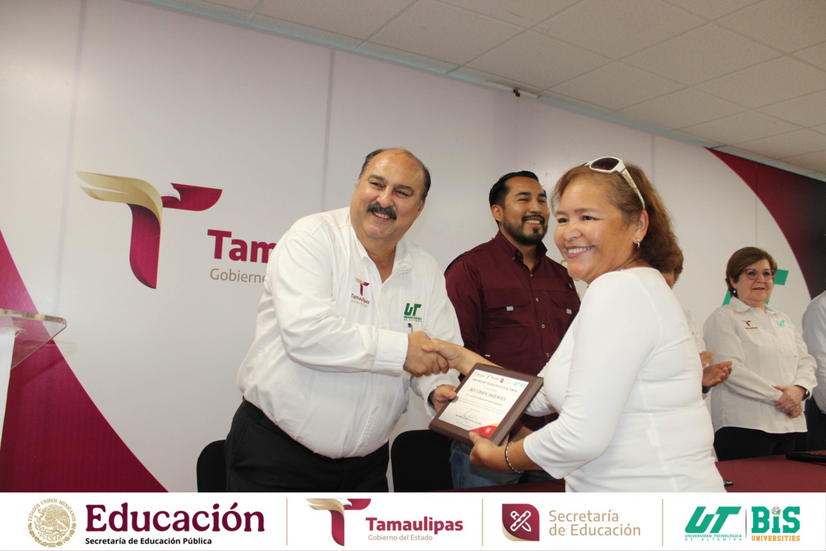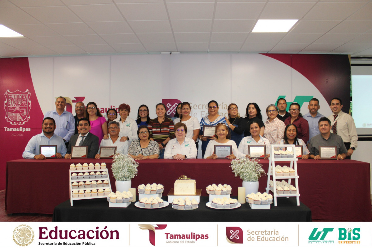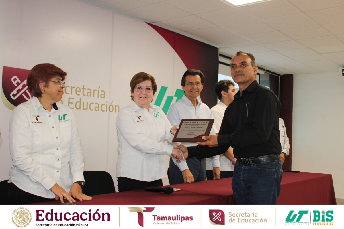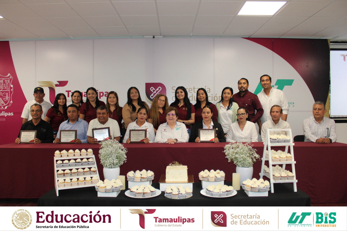 Aniversario de la Universidad Tecnológica de Altamira, se llevó a cabo la entrega de reconocimientos al personal con 10, 15 y 20 años de servicio, honrando su entrega, compromiso y lealtad institucional.