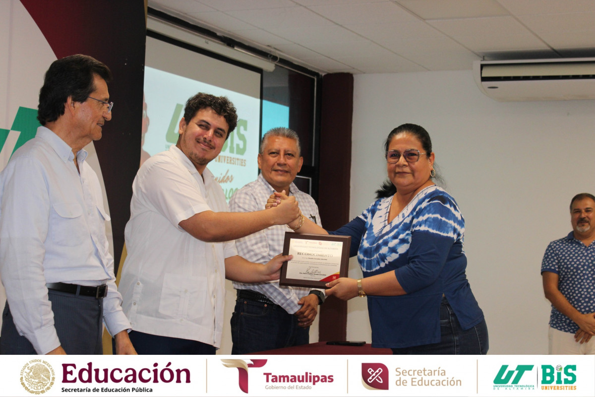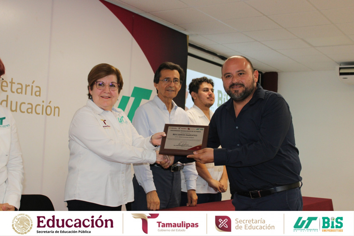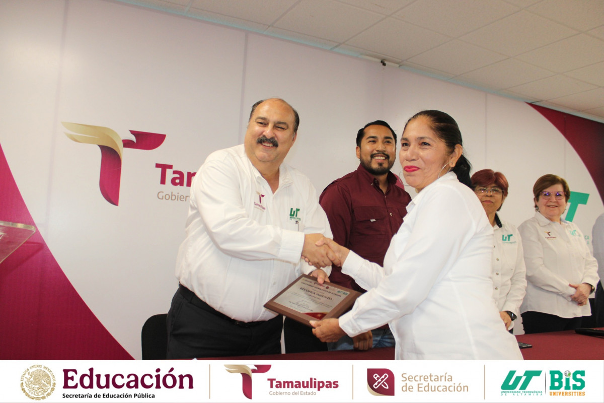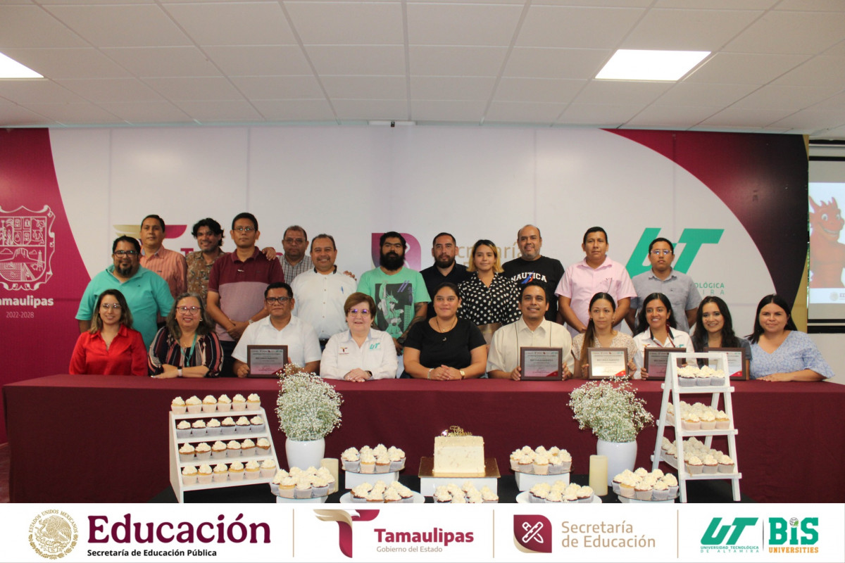 Aniversario de la Universidad Tecnológica de Altamira, se llevó a cabo la entrega de reconocimientos al personal con 10, 15 y 20 años de servicio, honrando su entrega, compromiso y lealtad institucional.