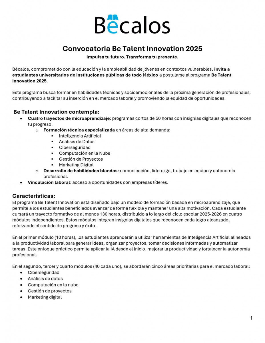Dirigido a estudiantes universitarios de instituciones públicas de México.