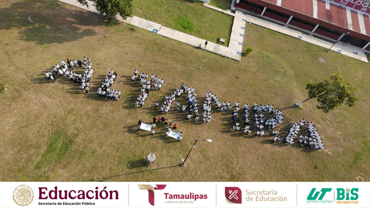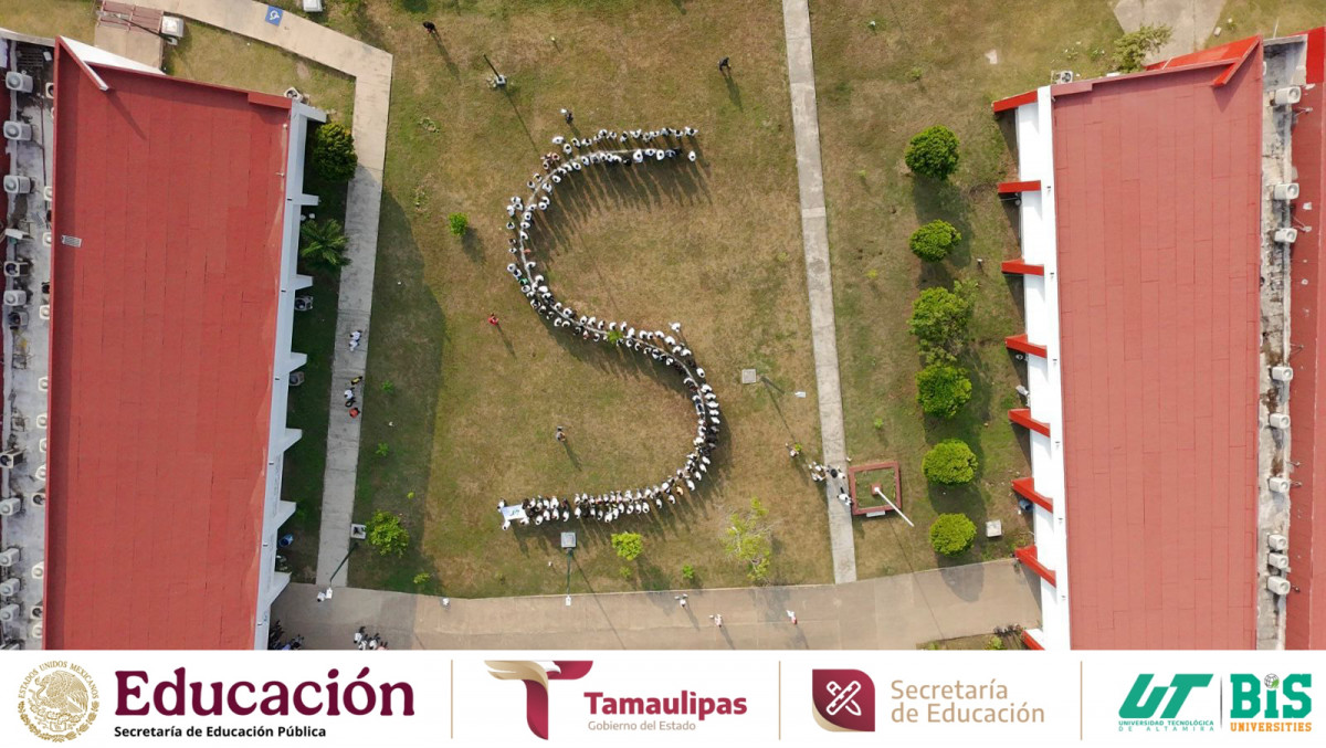 En el marco de Tequios por la Paz y Contra las Adicciones, la comunidad UTALT de todos los programas educativos participó en una actividad colaborativa en la que se formaron palabras y figuras que, en conjunto, dieron forma a “ALTAMIRA”, además de la letra “S”, emblema del Mosaico Nacional por la Paz y Contra las Adicciones.