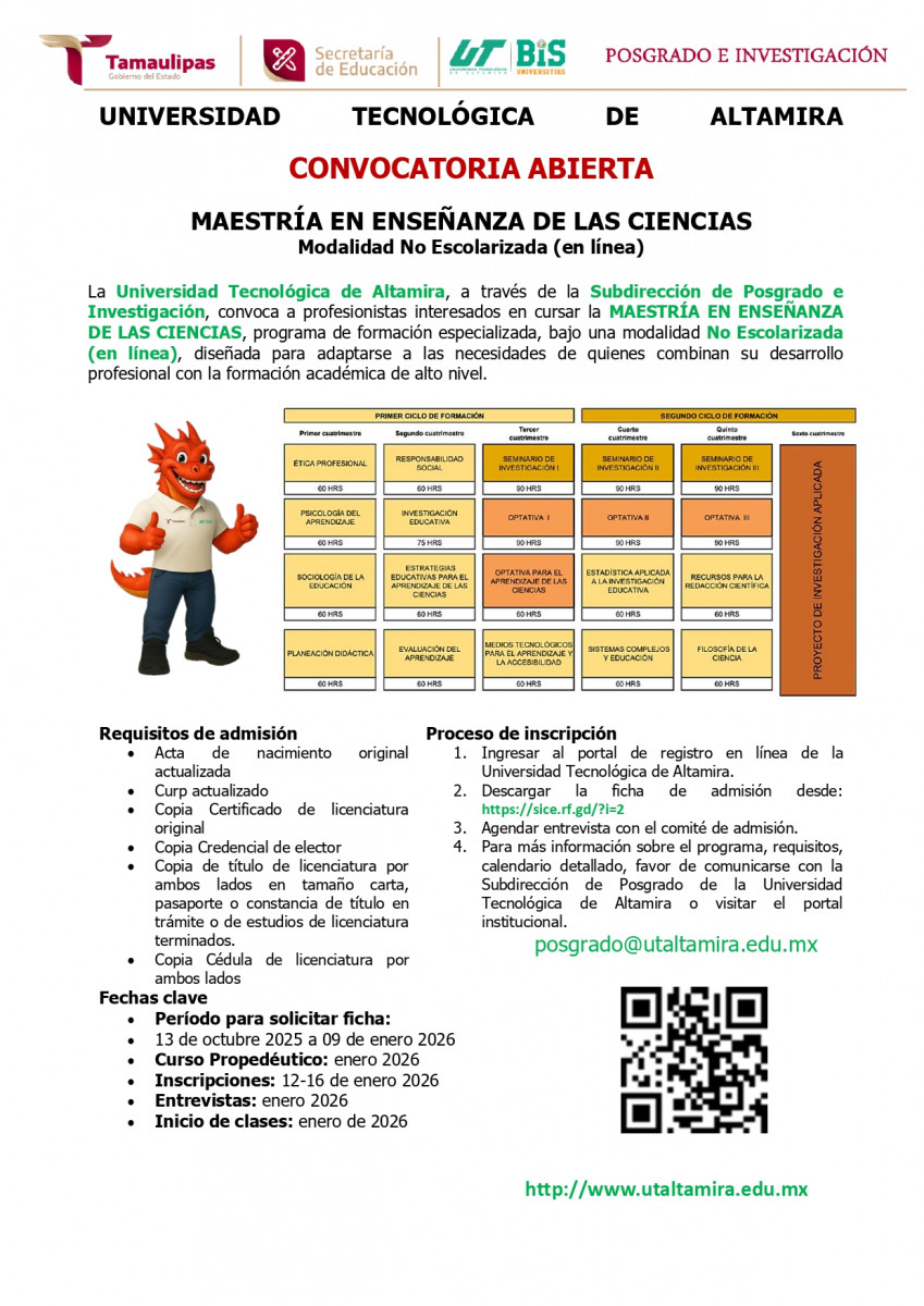 ACTUALIZACIÓN DE FECHAS – CONVOCATORIA DE MAESTRÍAS UTALT 2026