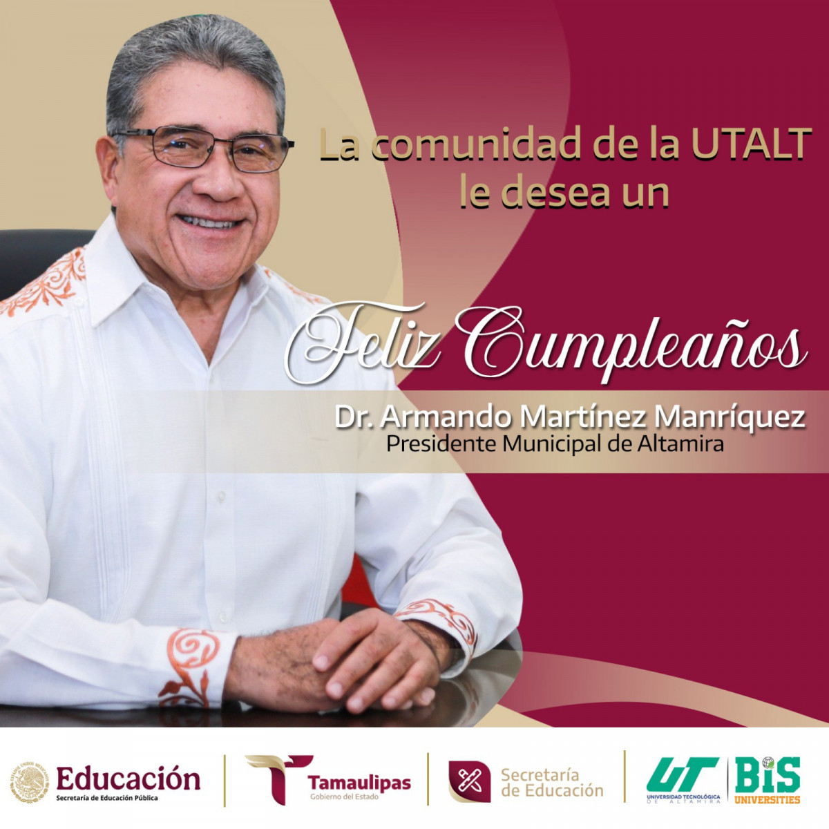 La UTALT extiende una cordial felicitación al Dr. Armando Martínez Manríquez, Presidente Municipal de Altamira, con motivo de su cumpleaño