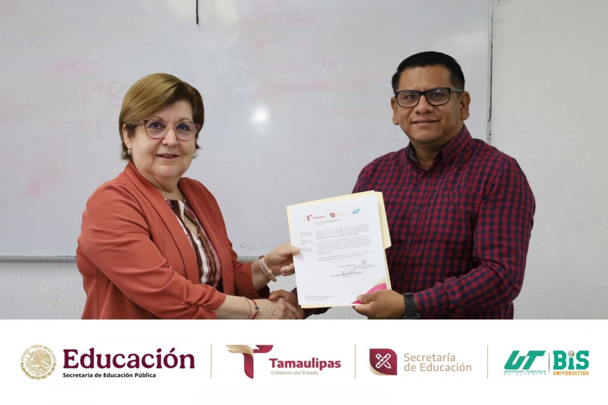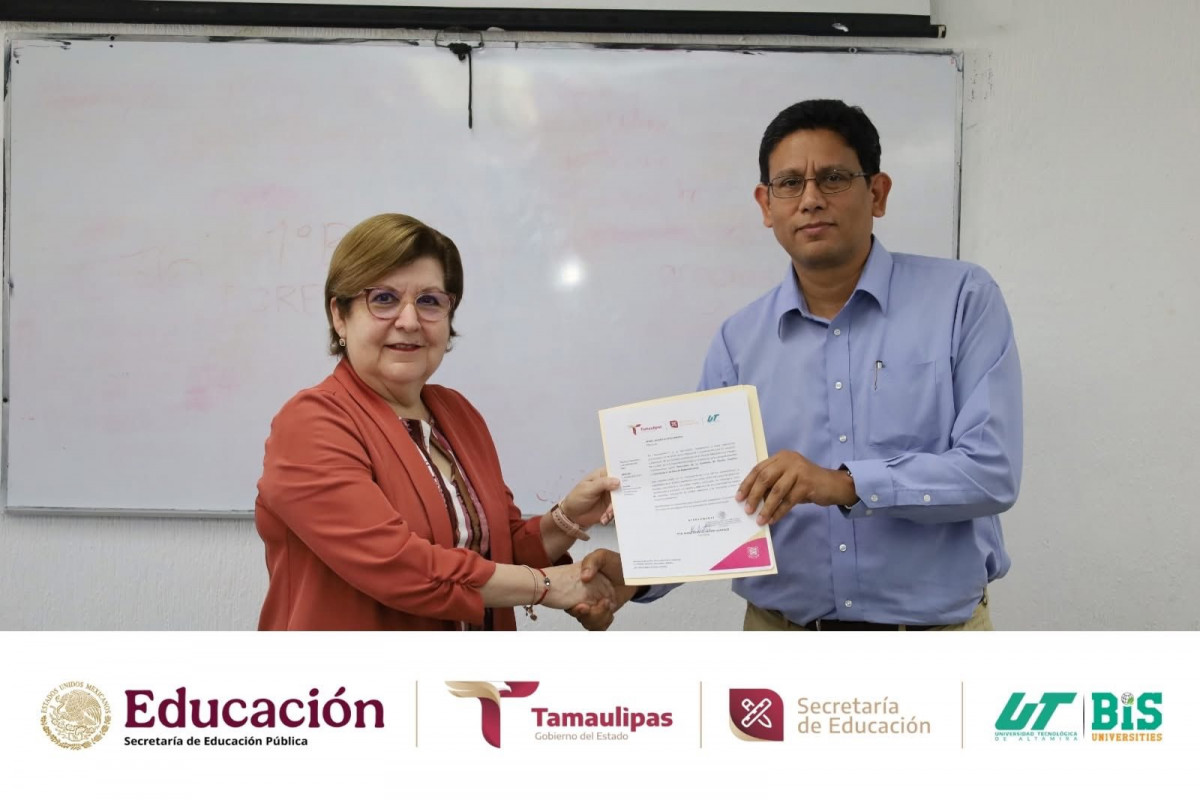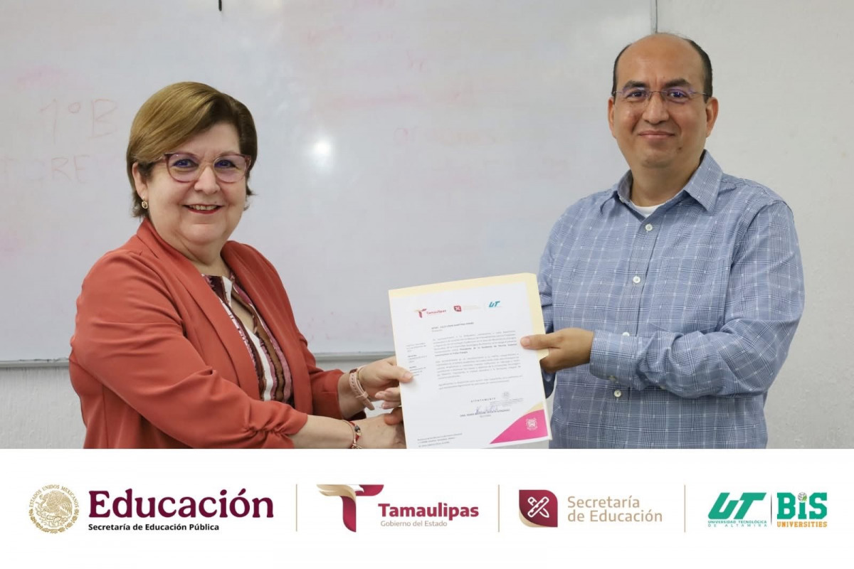 La Rectora de la Universidad Tecnológica de Altamira, Dra. Mara Grassiel Acosta González, encabezó la entrega de nombramientos a los Presidentes, Secretarios y Vocales de las Academias de Mecatrónica y de Energías Renovables y Desarrollo Sostenible, acto en el que estuvo acompañada por la Mtra. Mariana Soledad Centeno Sierra, Directora de Mecatrónica y Energías Renovables, las cuales están integradas por docentes de TSU e Ingeniería.