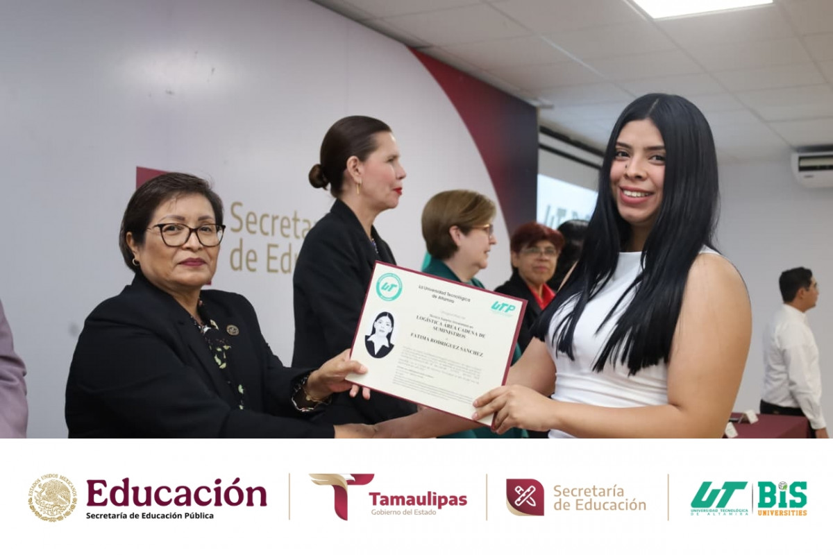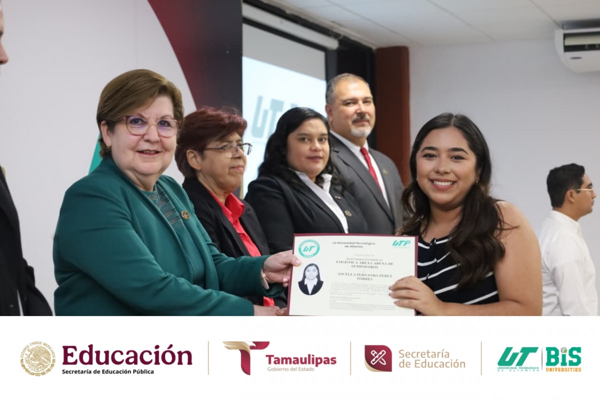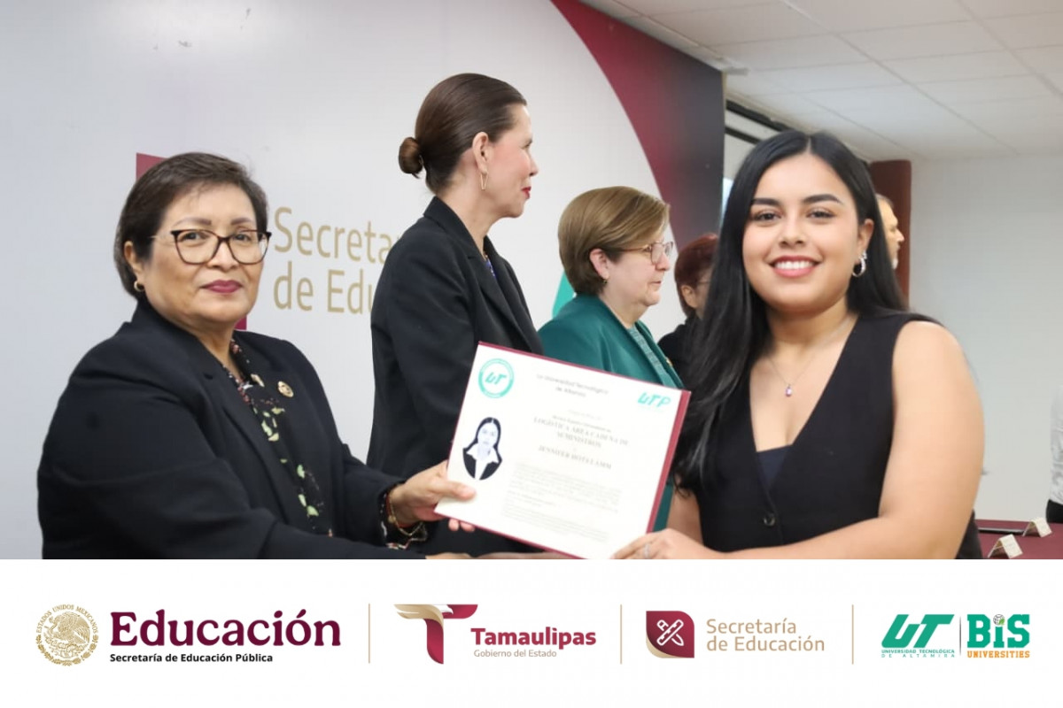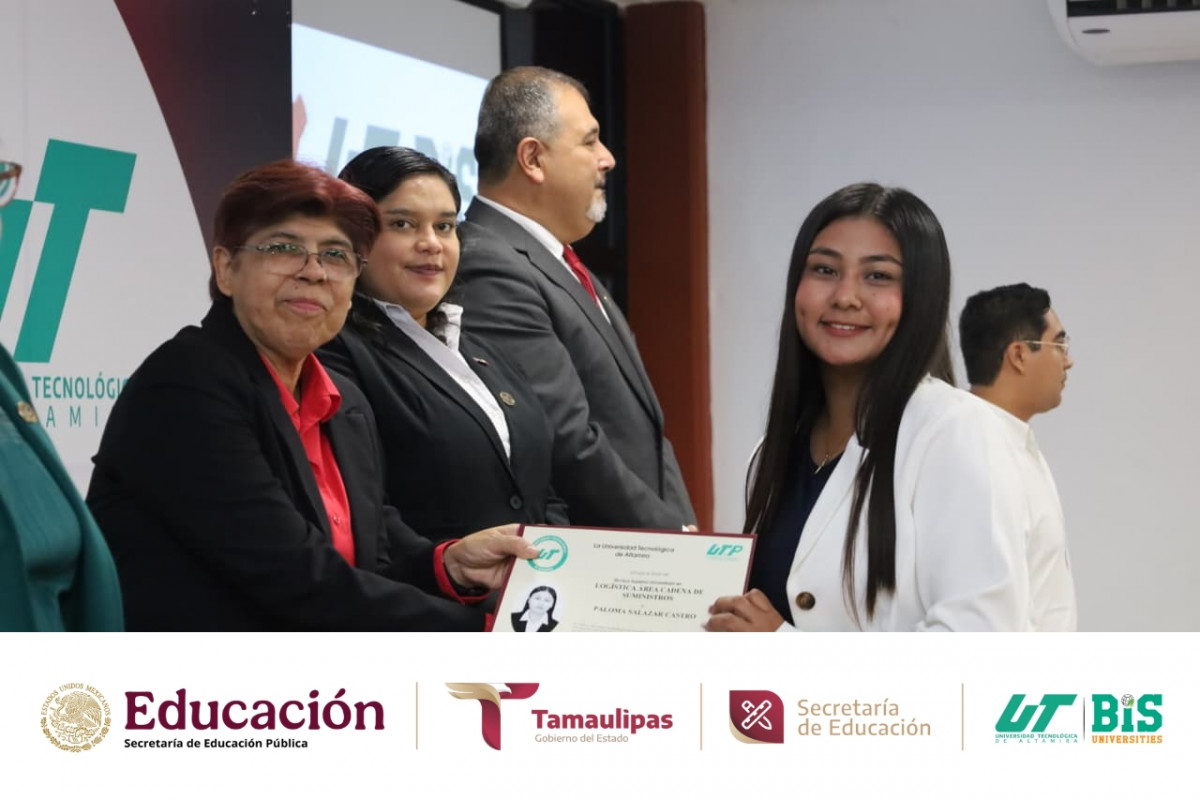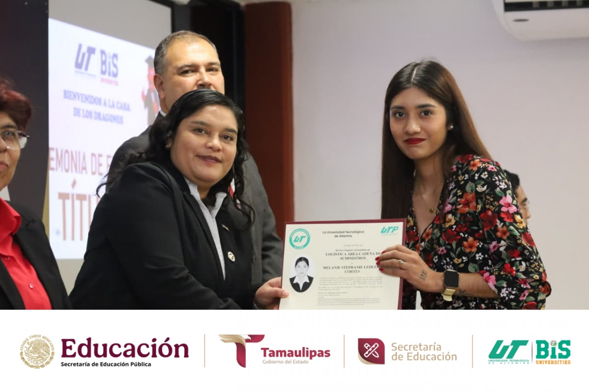 La Universidad Tecnológica de Altamira realizó la 7ma Ceremonia de Entrega de Títulos, en la que se reconoció a las y los egresados del programa de Técnico Superior Universitario en Logística, área Cadena de Suministros.