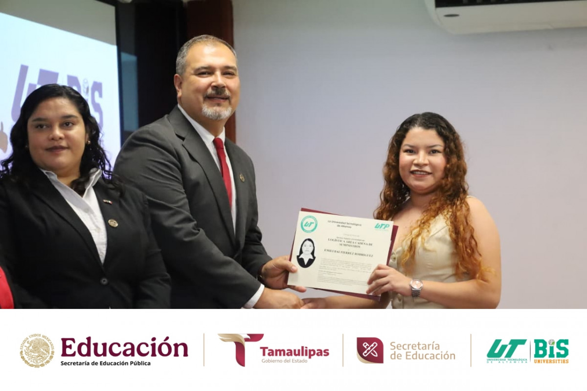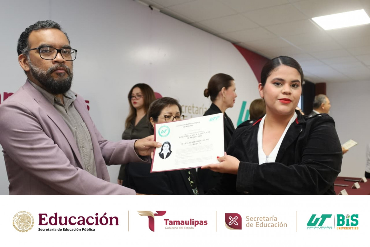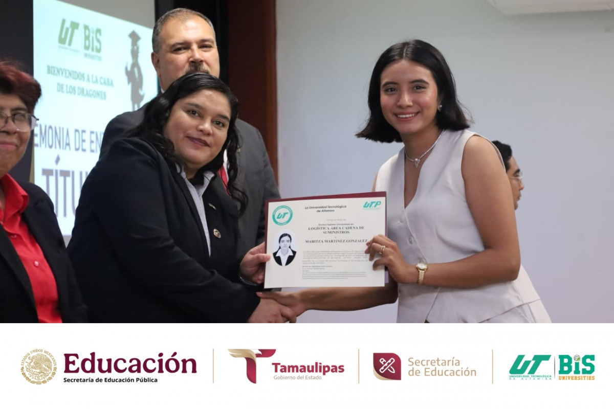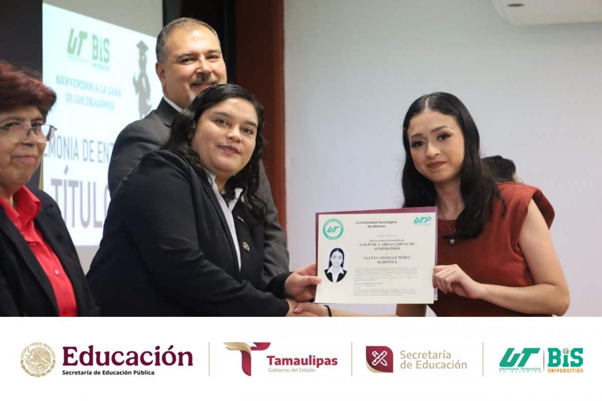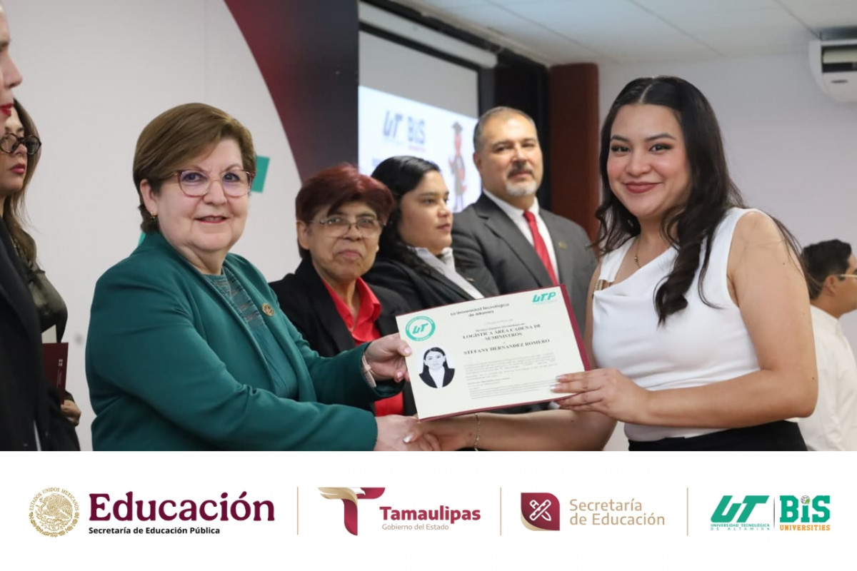 La Universidad Tecnológica de Altamira realizó la 7ma Ceremonia de Entrega de Títulos, en la que se reconoció a las y los egresados del programa de Técnico Superior Universitario en Logística, área Cadena de Suministros.