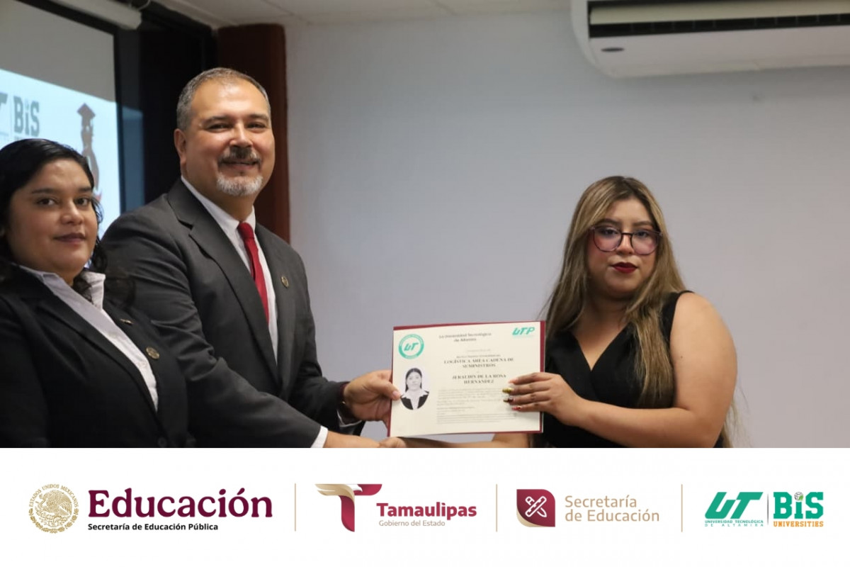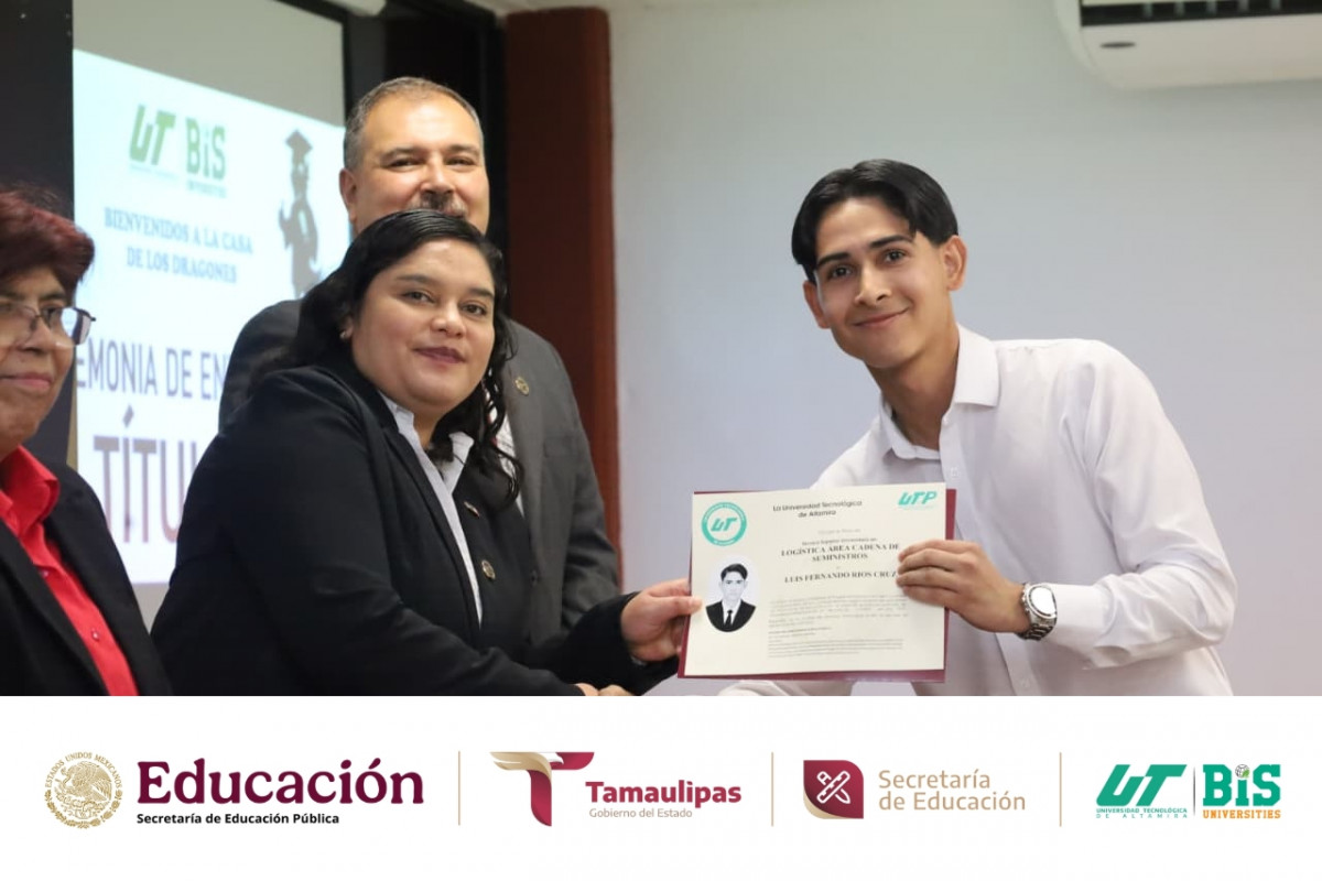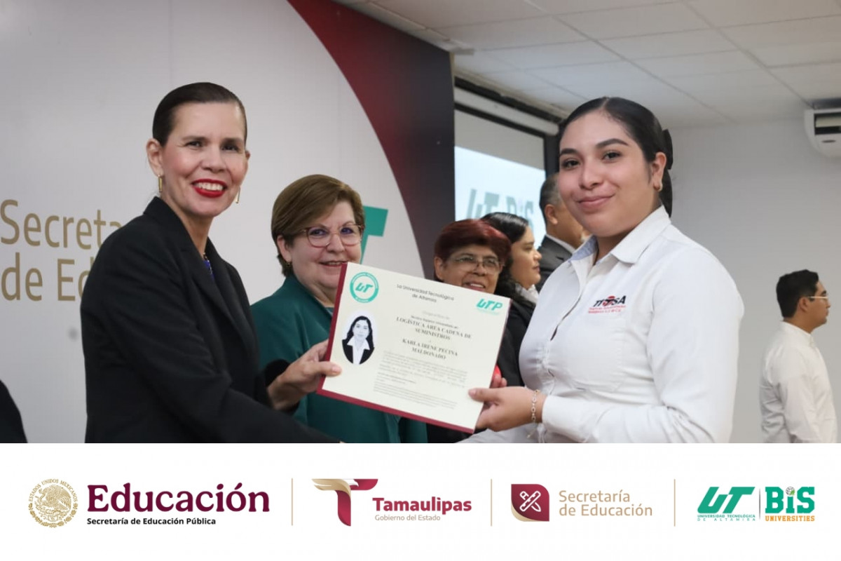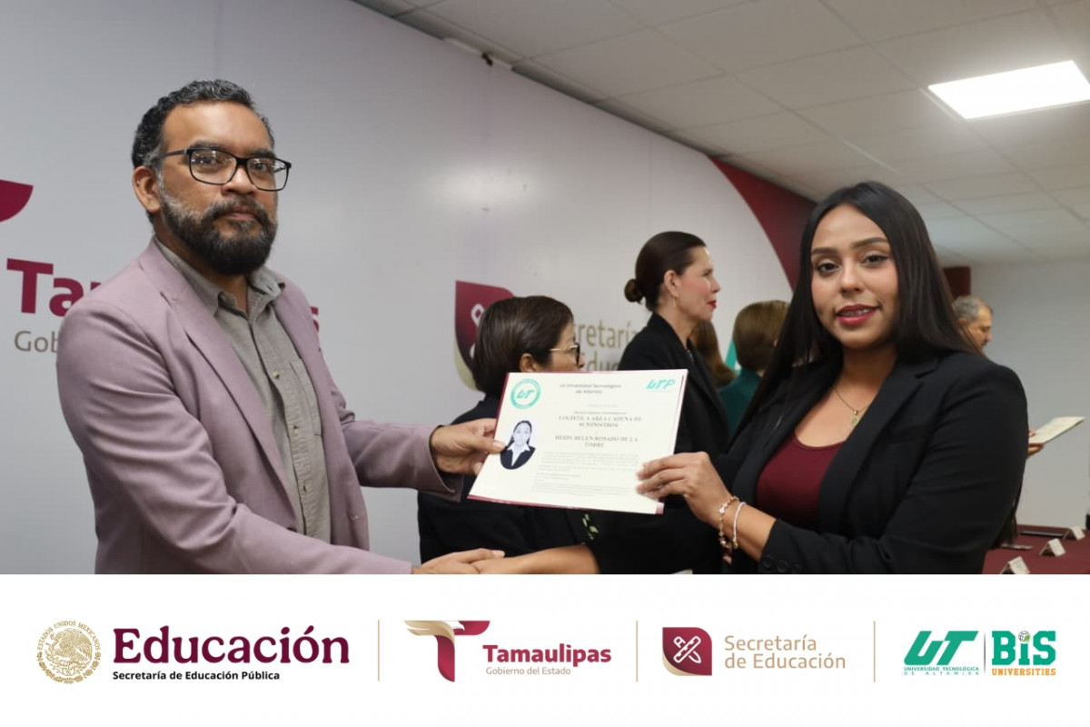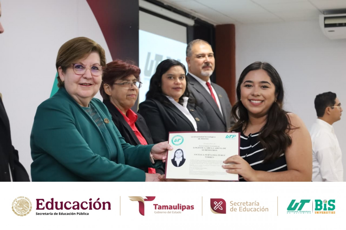 La Universidad Tecnológica de Altamira realizó la 7ma Ceremonia de Entrega de Títulos, en la que se reconoció a las y los egresados del programa de Técnico Superior Universitario en Logística, área Cadena de Suministros.