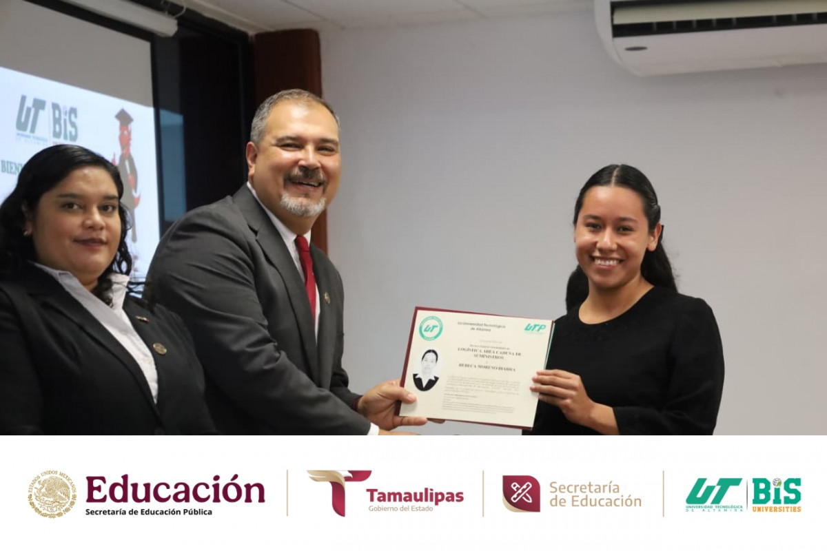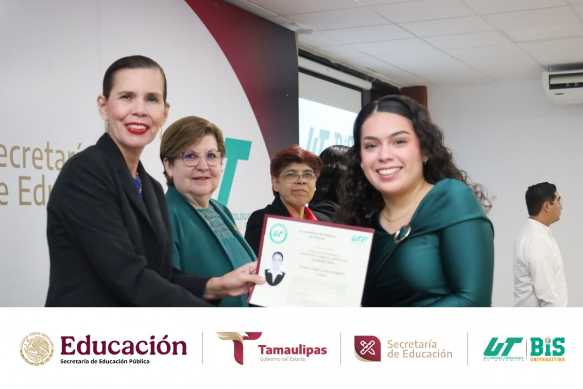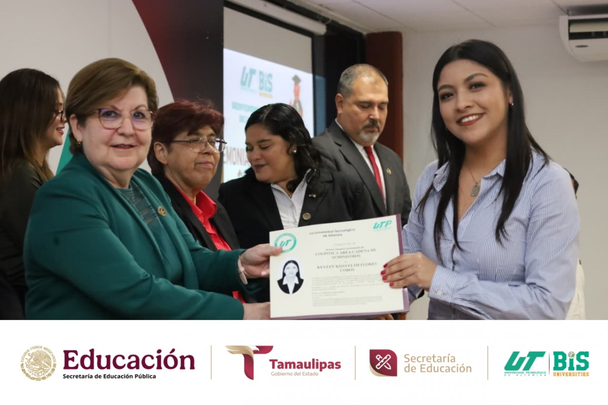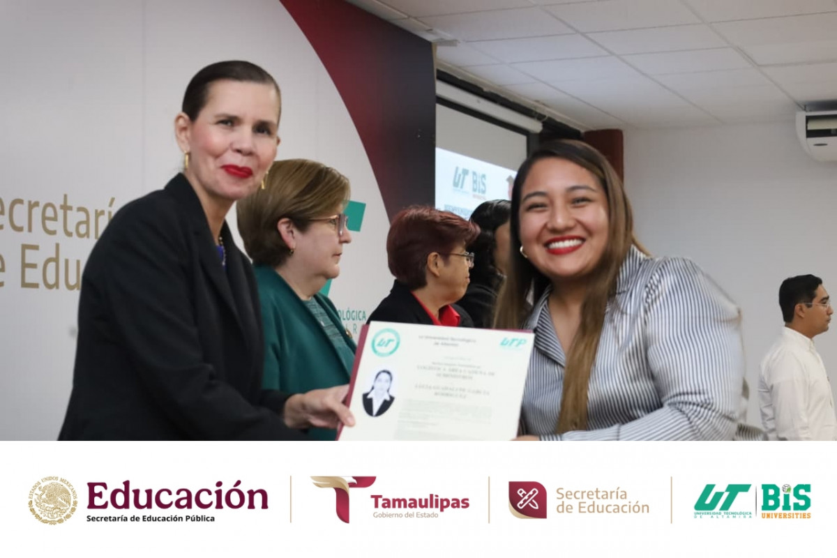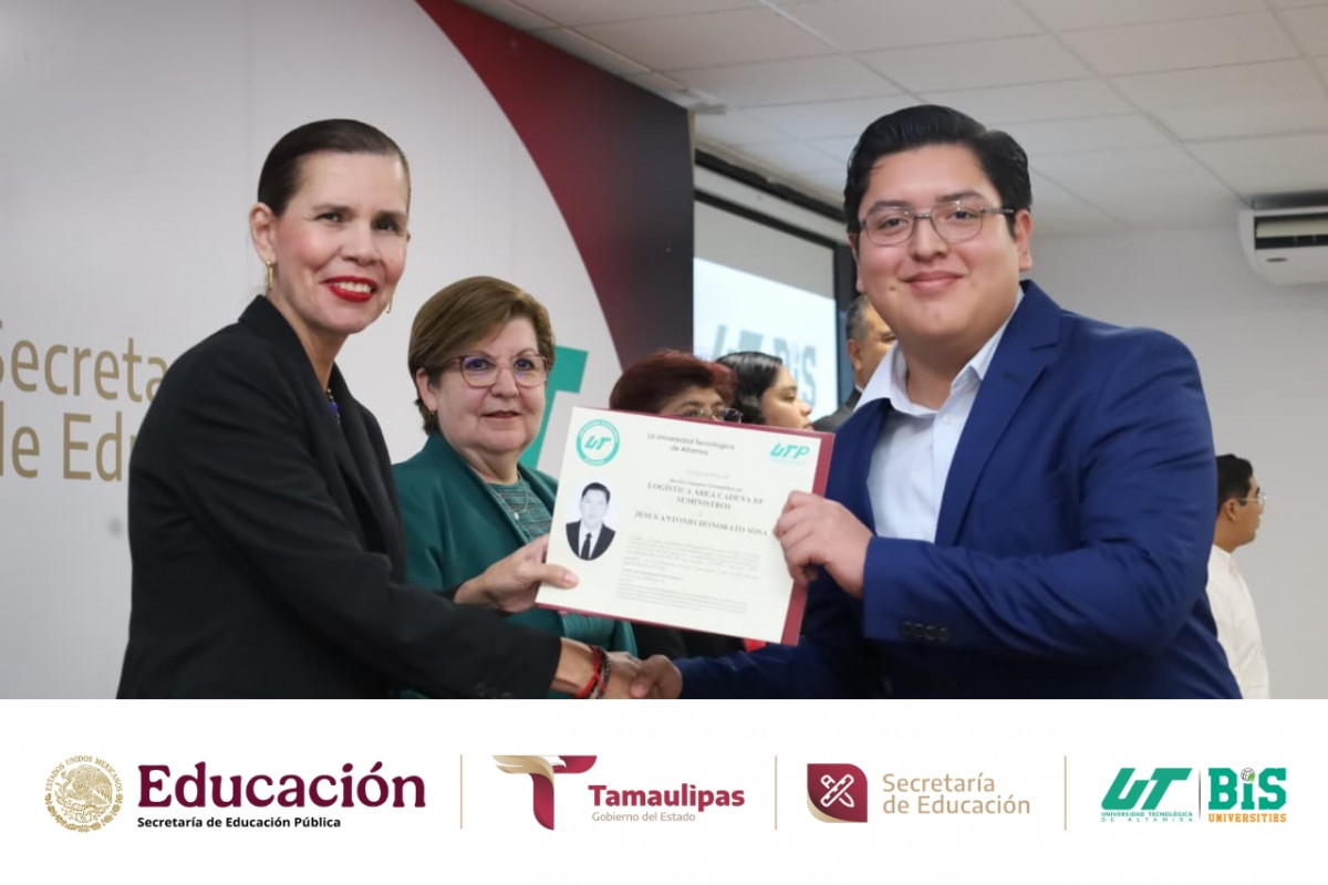La Universidad Tecnológica de Altamira realizó la 7ma Ceremonia de Entrega de Títulos, en la que se reconoció a las y los egresados del programa de Técnico Superior Universitario en Logística, área Cadena de Suministros.