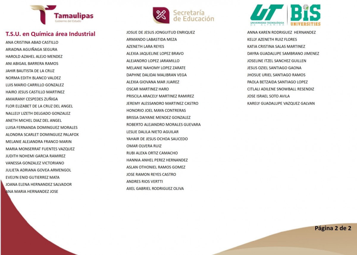 • Química y Nanotecnología → mgomez@utaltamira.edu.mx