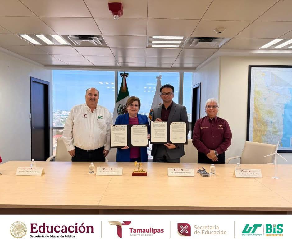 La Rectora de la UTALT, Dra. Mara Grassiel Acosta González, expresó su agradecimiento por este importante respaldo institucional y destacó que este esfuerzo refleja la visión del Gobernador del Estado, Dr. Américo Villarreal Anaya, y del Secretario de Educación de Tamaulipas, Dr. Miguel Ángel Valdez García, quienes impulsan iniciativas que fortalecen la formación tecnológica y el desarrollo social en nuestra entidad.