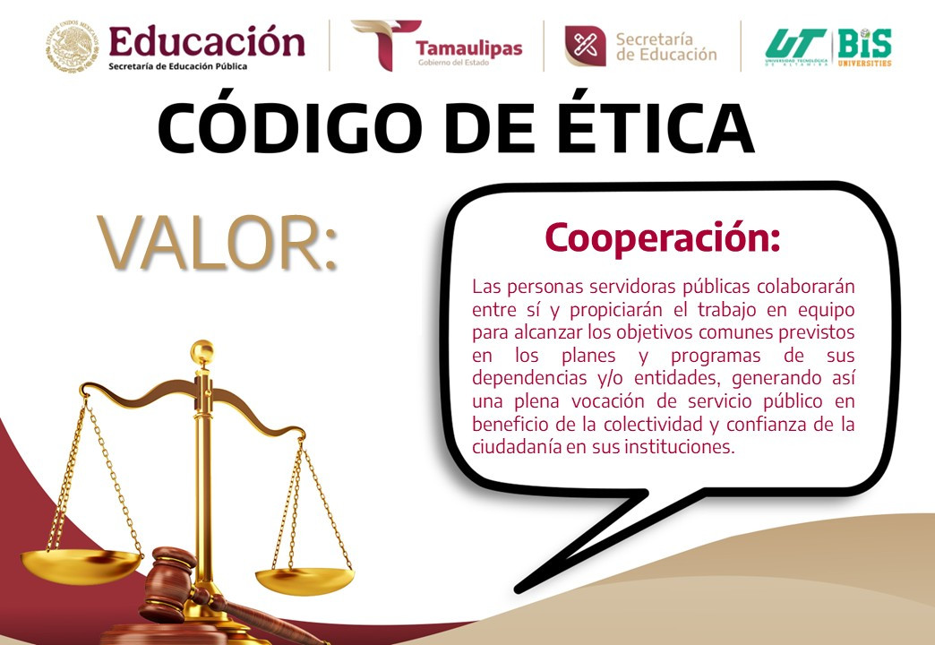 Durante el mes de enero de 2026, la Universidad Tecnológica de Altamira promueve, con base en el Código de Ética del Poder Ejecutivo del Estado de Tamaulipas y el Código de Ética de la Administración Pública Federal, los siguientes principios y valores que guían el actuar del servicio público: