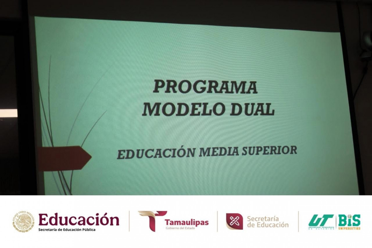 La Universidad Tecnológica de Altamira fue sede de una plática informativa sobre el Programa de Modelo Dual en educación media superior, impartida por el Lic. Jaime Martínez García, Jefe de Vinculación del CBTIS 105, y la C.P. Teresa de Jesús Rodríguez Guzmán, Jefa de Vinculación con el Sector Productivo del CETis 78.