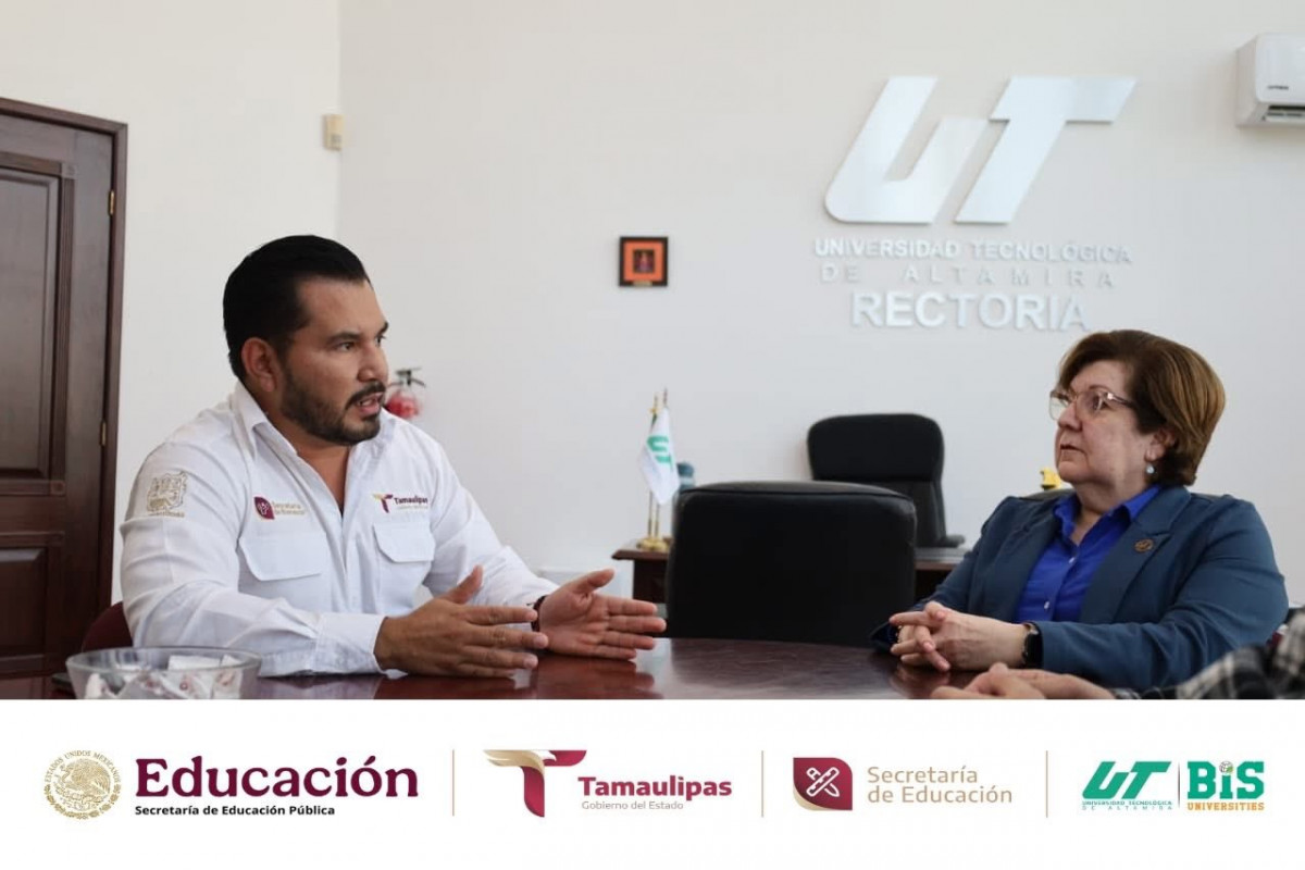 La Universidad Tecnológica de Altamira recibió la visita del Lic. José Alejandro Castellanos Zárate, Delegado de la Secretaría de Bienestar e Igualdad Social (SEBIEN) Altamira–Aldama, quien sostuvo un encuentro en Rectoría con la Dra. Mara Grassiel Acosta González, Rectora de la UTALT.