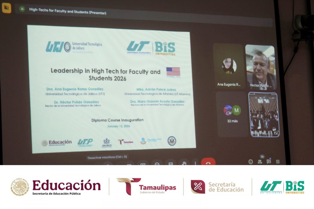 La Universidad Tecnológica de Altamira participó en la inauguración del diplomado “Leadership in High Tech for Faculty and Students”, una iniciativa de colaboración académica entre la Universidad Tecnológica de Jalisco (UTJ) y la UTALT, financiada por el fondo internacional AEIF 2025, con el objetivo de fortalecer las capacidades de docentes y estudiantes en el sector estratégico de los semiconductores.