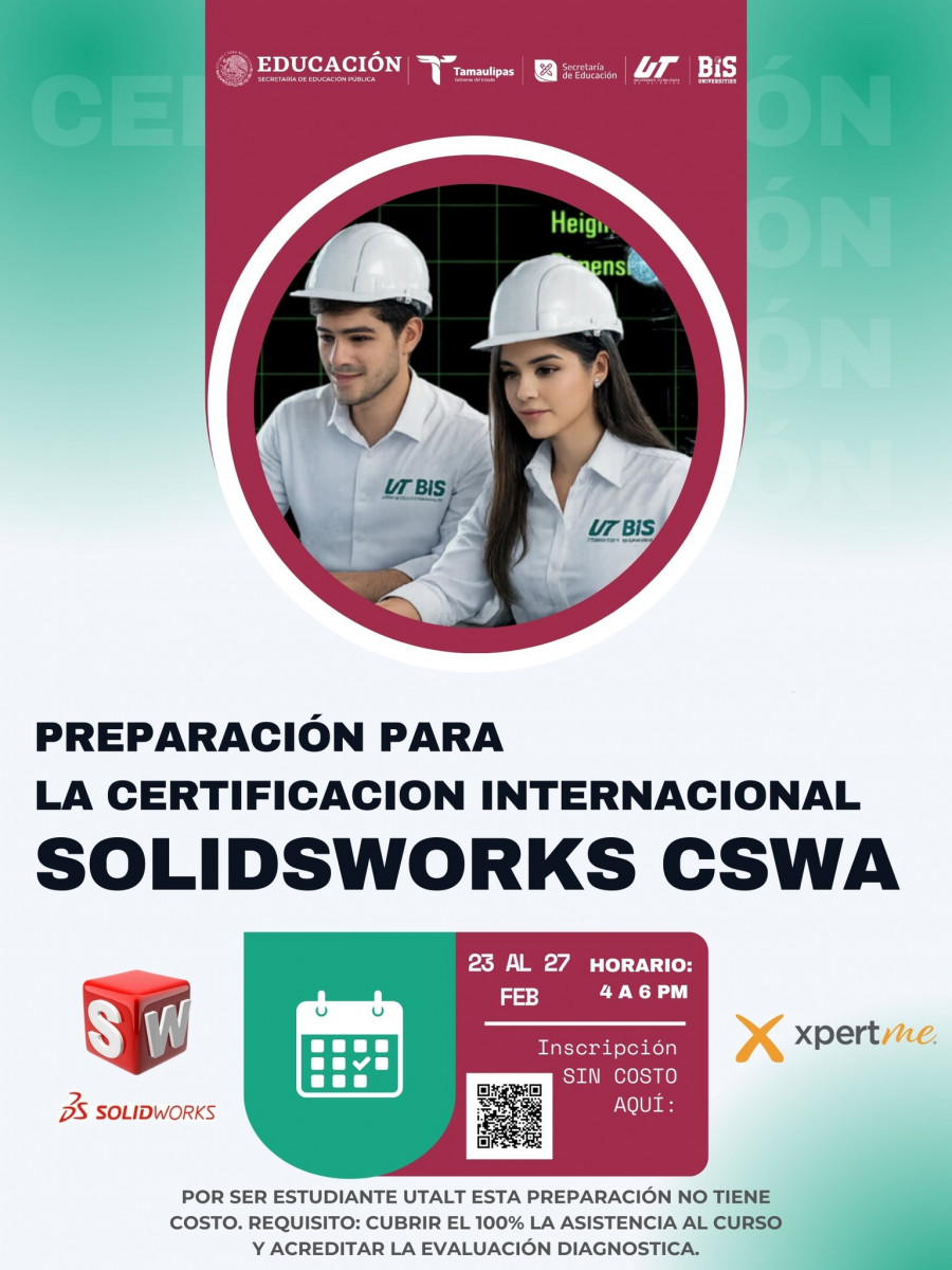 La UTALT invita a su comunidad estudiantil a participar en la Preparación para la Certificación Internacional SOLIDWORKS CSWA, una oportunidad para fortalecer tus competencias en diseño y modelado 3D con reconocimiento global.