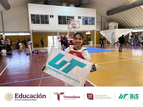 La Universidad Tecnológica de Altamira reconoce el destacado desempeño de Mishell Aylin Rodríguez Lugo, estudiante de T.S.U. en Automatización, quien obtuvo el PRIMER LUGAR en la fase municipal del Torneo Municipal de Taekwondo, realizado en el Auditorio Reynaldo Castillo Portes, en Altamira.