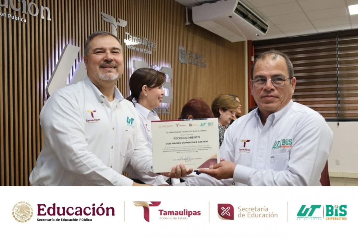 La Universidad Tecnológica de Altamira llevó a cabo la Ceremonia de Entrega de Reconocimientos a Docentes Mejor Evaluados por Estudiantes durante 2025, un acto institucional que destacó la calidad educativa, la vocación de servicio y el compromiso académico del personal docente que contribuye a la formación de profesionistas con alto nivel de preparación.