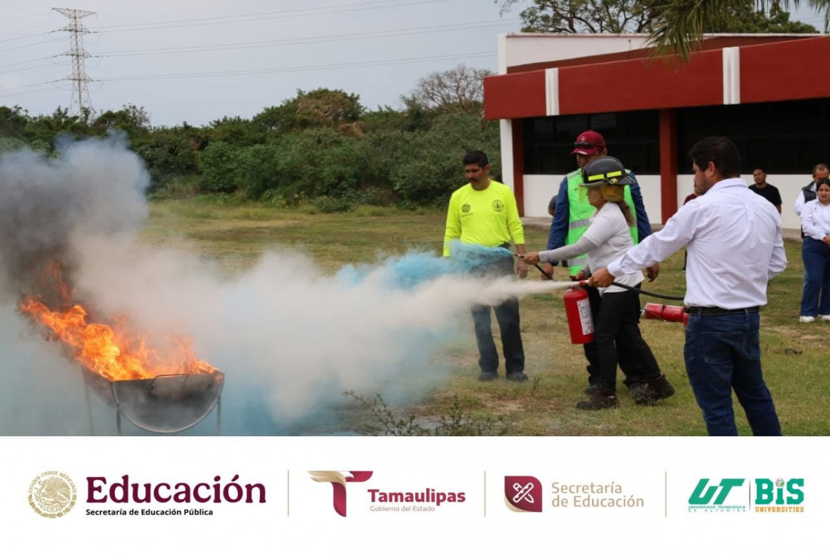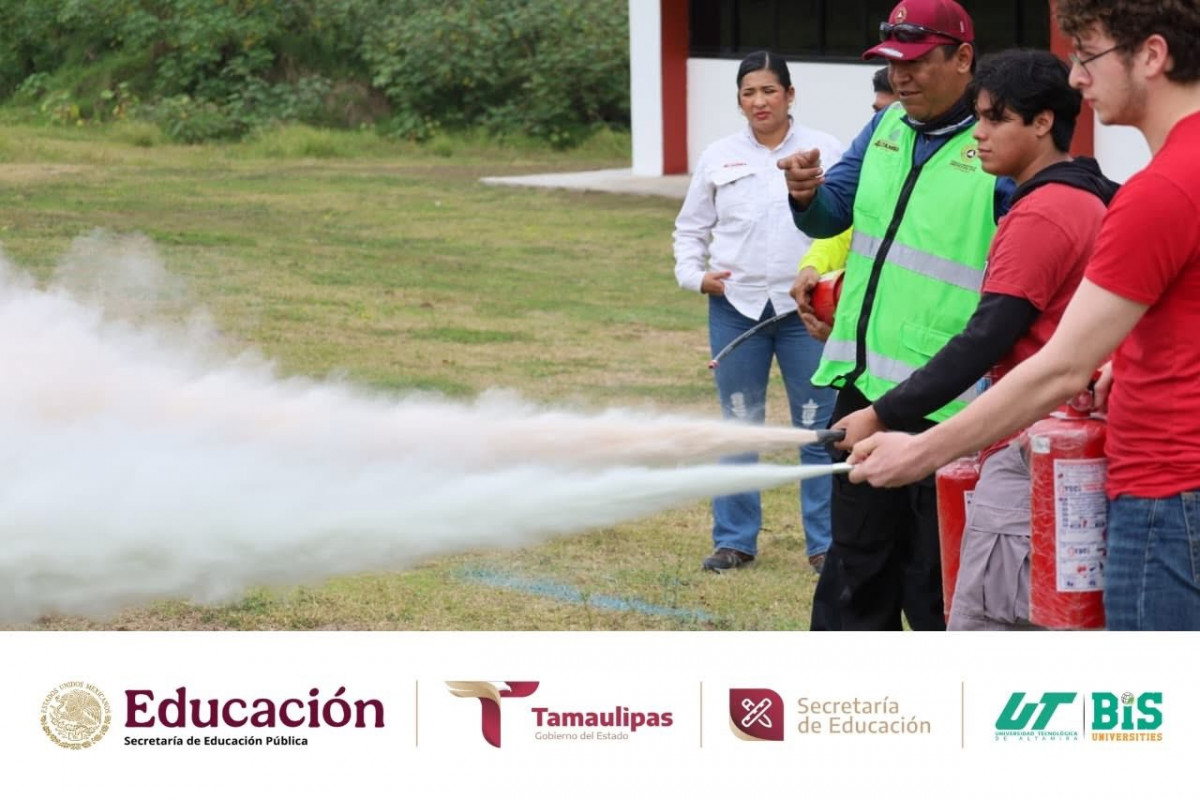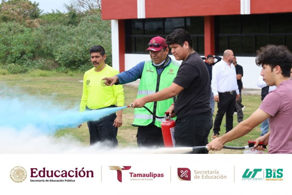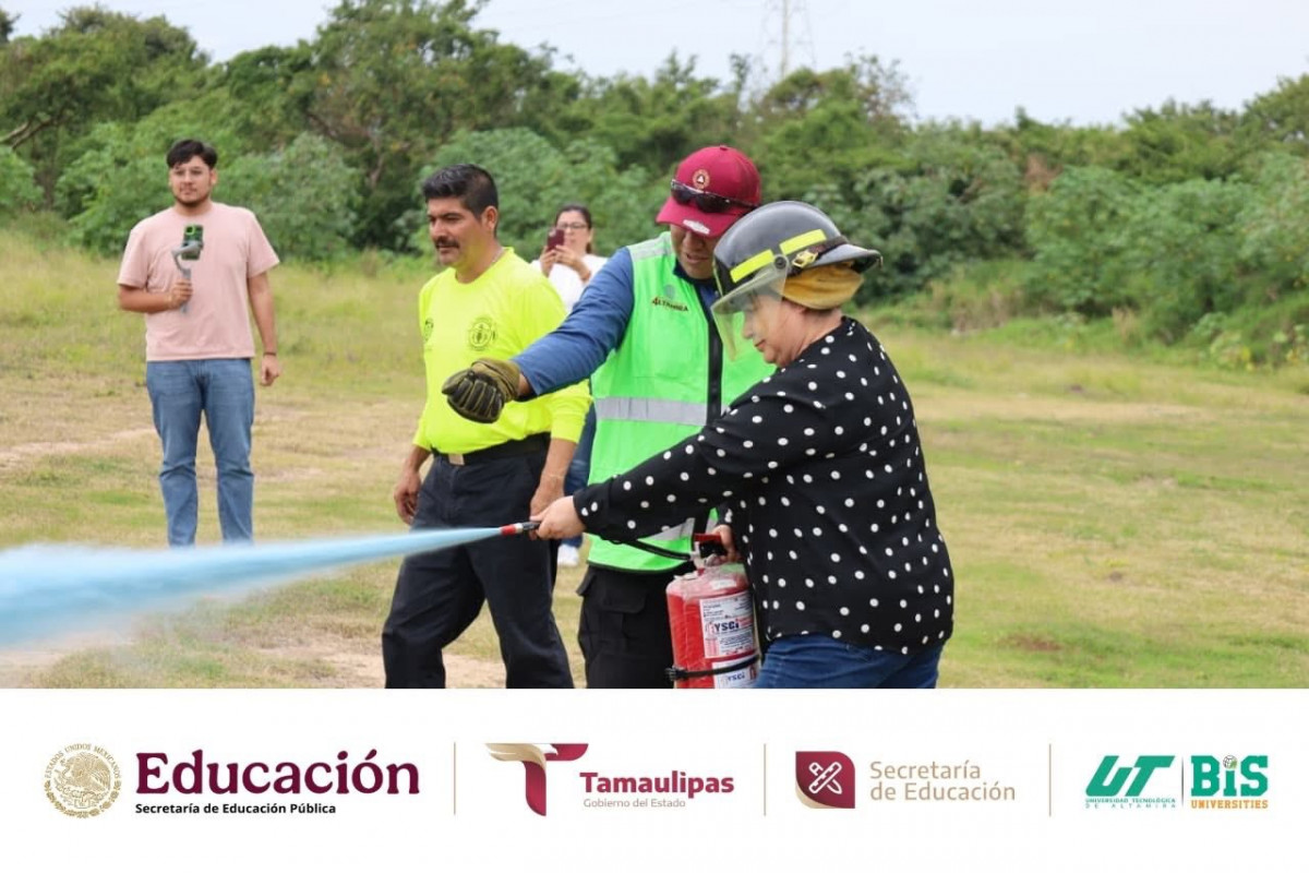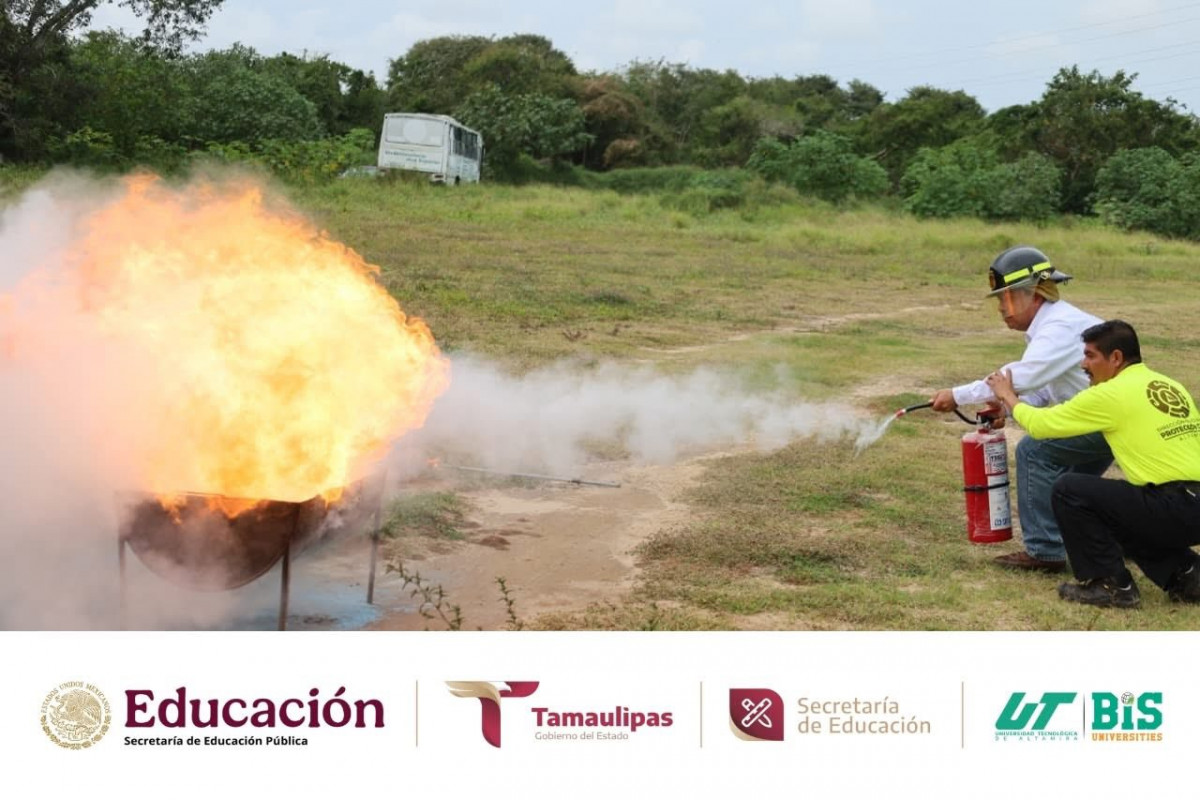 Durante la jornada, se compartieron conocimientos teóricos y prácticos para actuar de manera rápida y efectiva ante un conato de incendio, fortaleciendo la cultura de la prevención y la seguridad en nuestra institución. La capacitación fue impartida por Francisco Daniel Coronado Pérez y Ramón César Cortés López, elementos del Cuerpo de Bomberos, contando además con la presencia del Tec. Romel Faustino Martínez Flores, Director de Protección Civil de Altamira; la Ing. Janeth Vega Banda, Jefa de Capacitación y Proyectos de Protección Civil Altamira; y desde luego con la destacada presencia de nuestra rectora de la UTALT, la Dra. Mara Grassiel Acosta González.