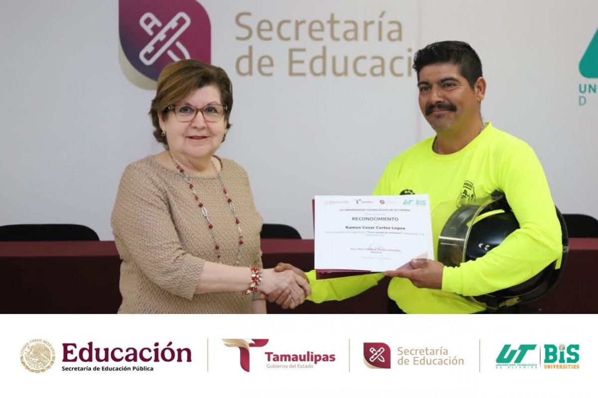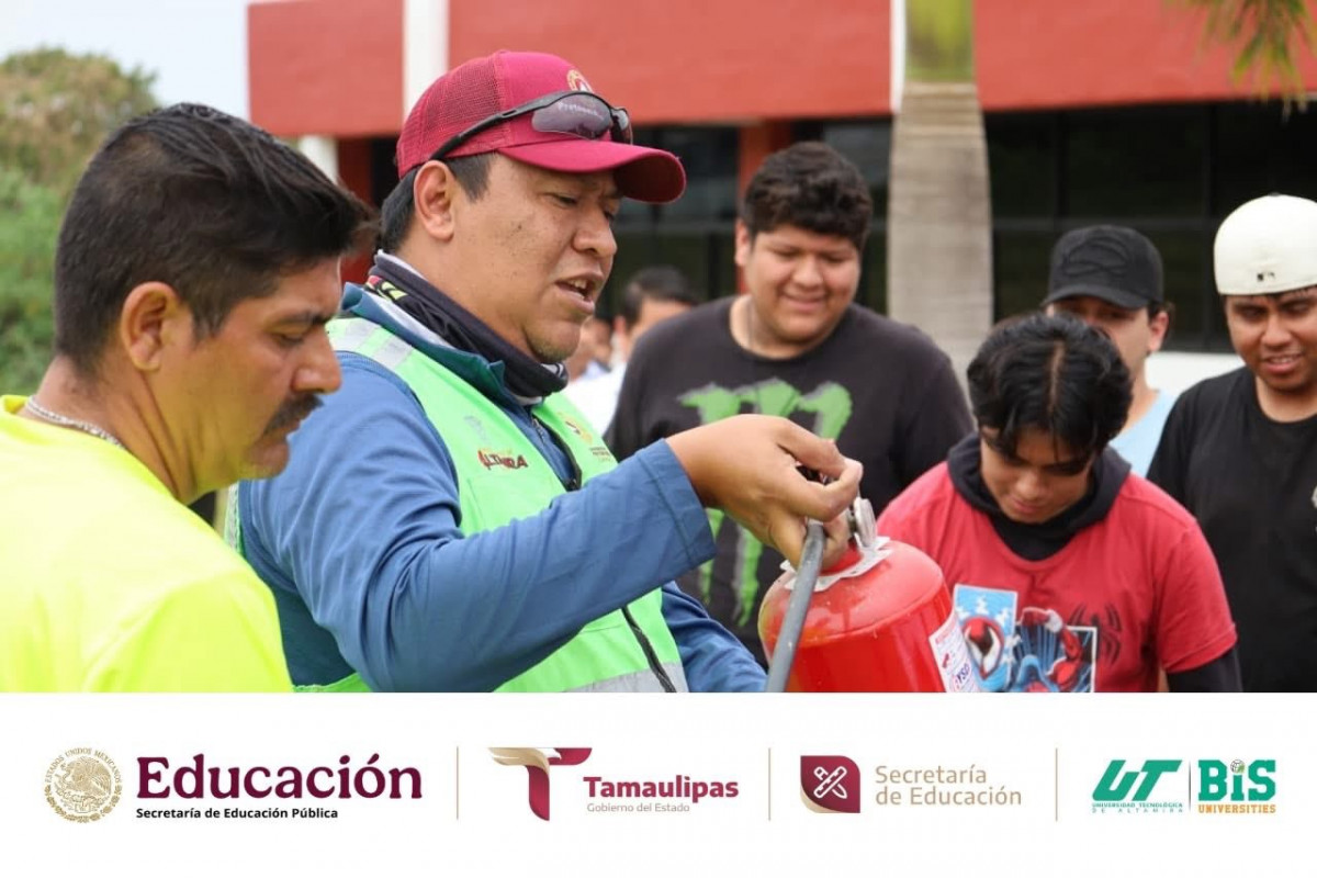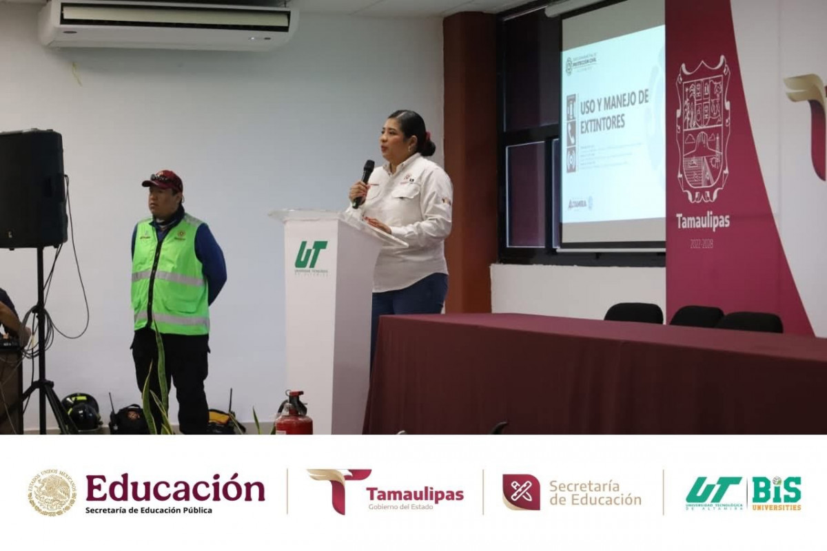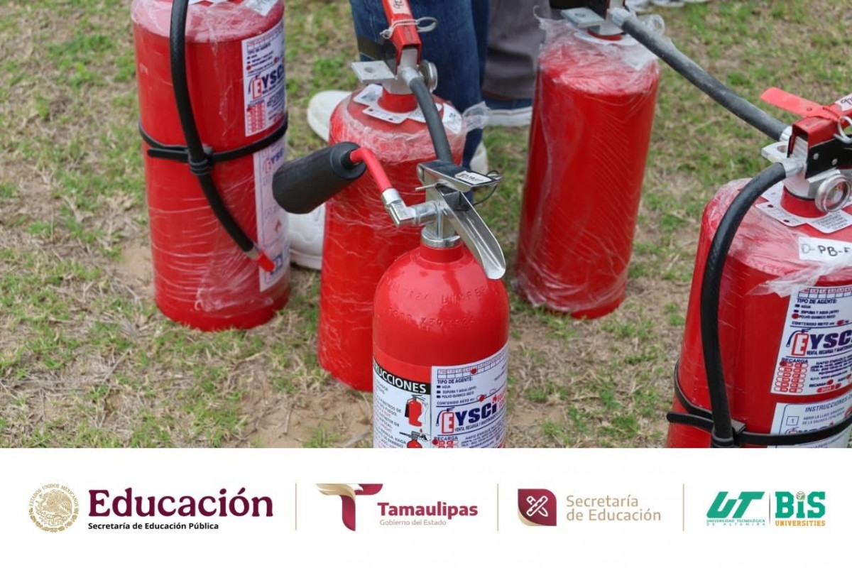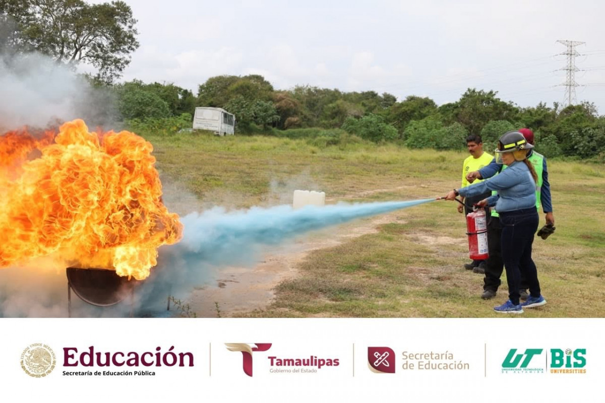 Durante la jornada, se compartieron conocimientos teóricos y prácticos para actuar de manera rápida y efectiva ante un conato de incendio, fortaleciendo la cultura de la prevención y la seguridad en nuestra institución. La capacitación fue impartida por Francisco Daniel Coronado Pérez y Ramón César Cortés López, elementos del Cuerpo de Bomberos, contando además con la presencia del Tec. Romel Faustino Martínez Flores, Director de Protección Civil de Altamira; la Ing. Janeth Vega Banda, Jefa de Capacitación y Proyectos de Protección Civil Altamira; y desde luego con la destacada presencia de nuestra rectora de la UTALT, la Dra. Mara Grassiel Acosta González.