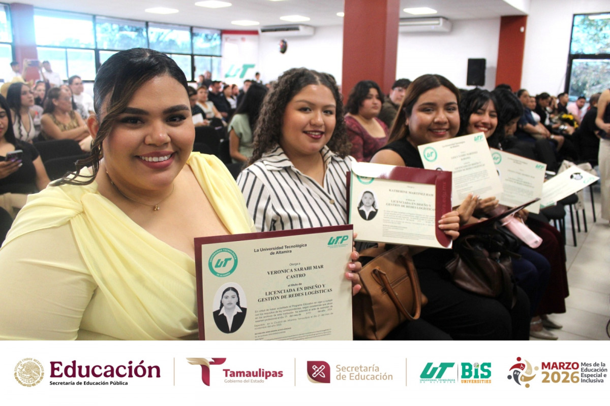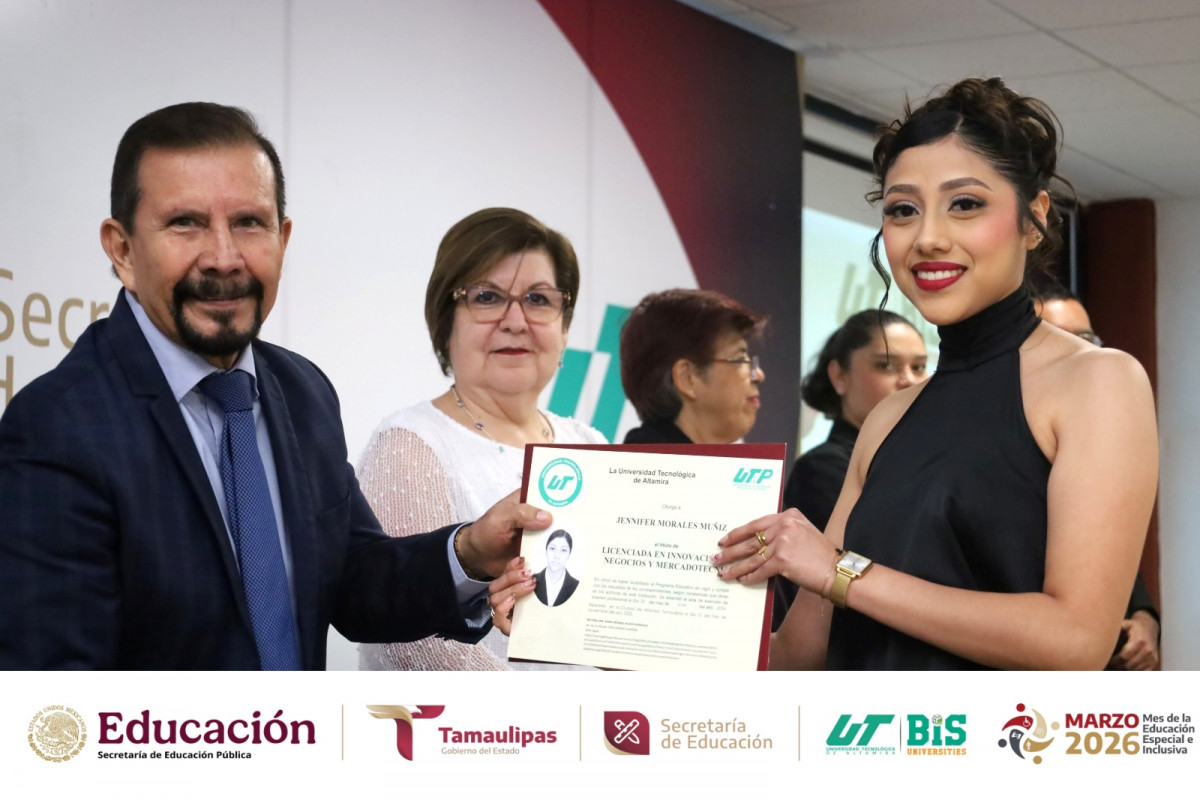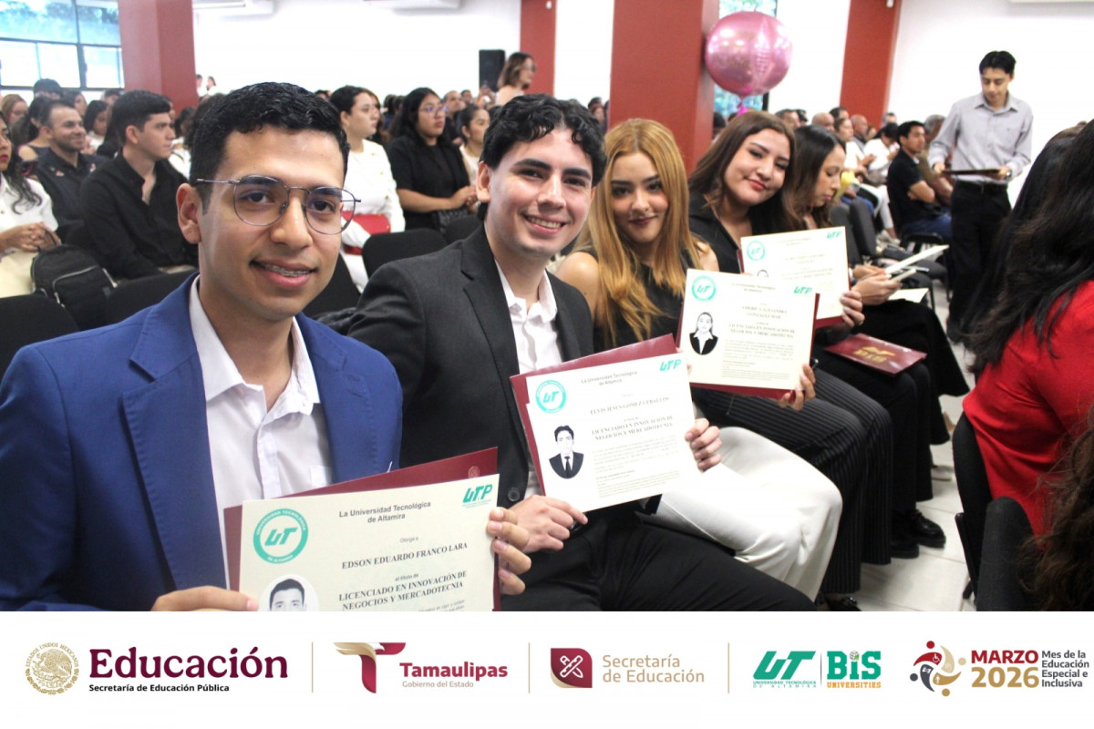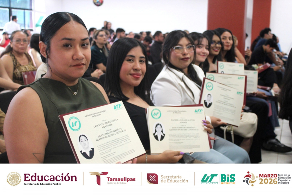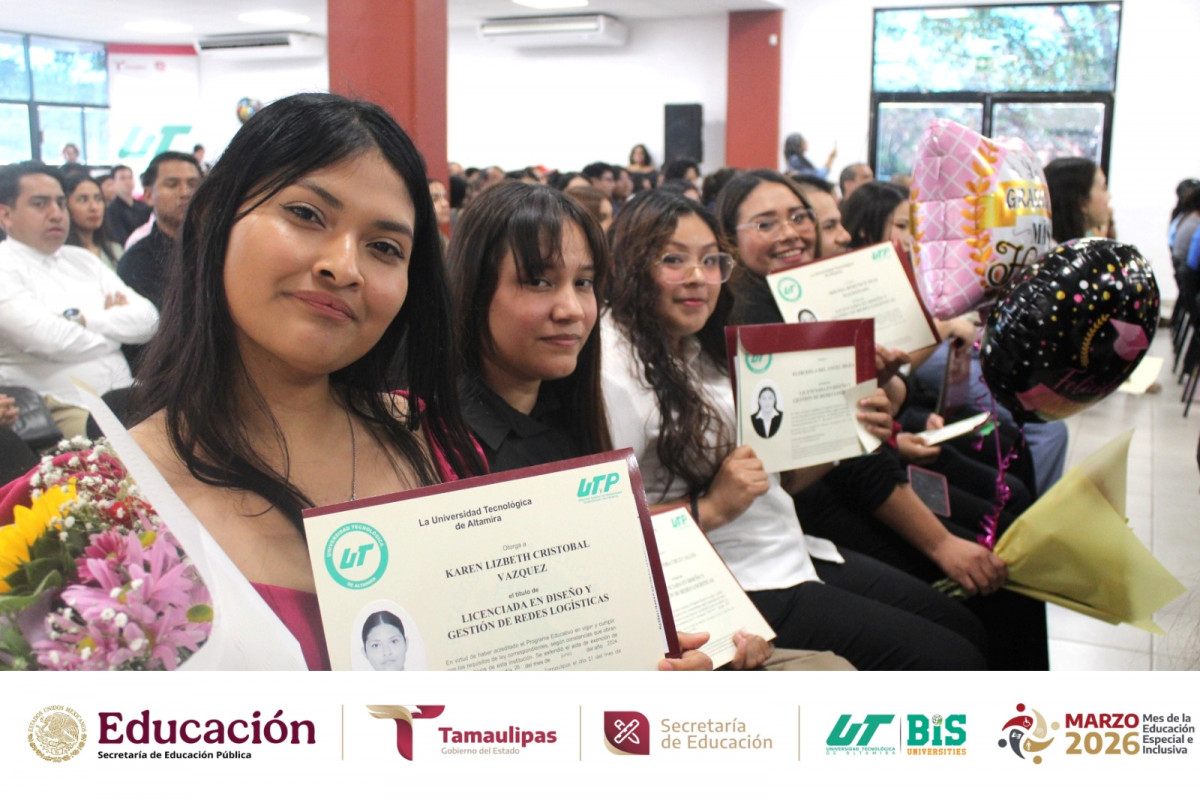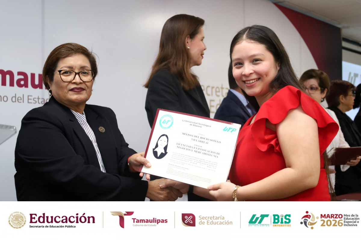 La Universidad Tecnológica de Altamira (UTALT) llevó a cabo la segunda entrega de títulos profesionales 2026 de nivel Ingeniería y Licenciatura en el Auditorio del Edificio T, en una ceremonia encabezada por la Dra. Mara Grassiel Acosta González, rectora de la universidad, acompañada por su cuerpo directivo académico y administrativo.