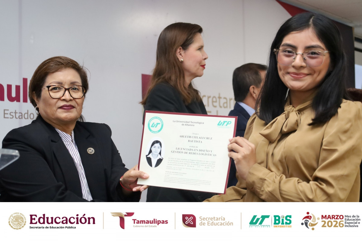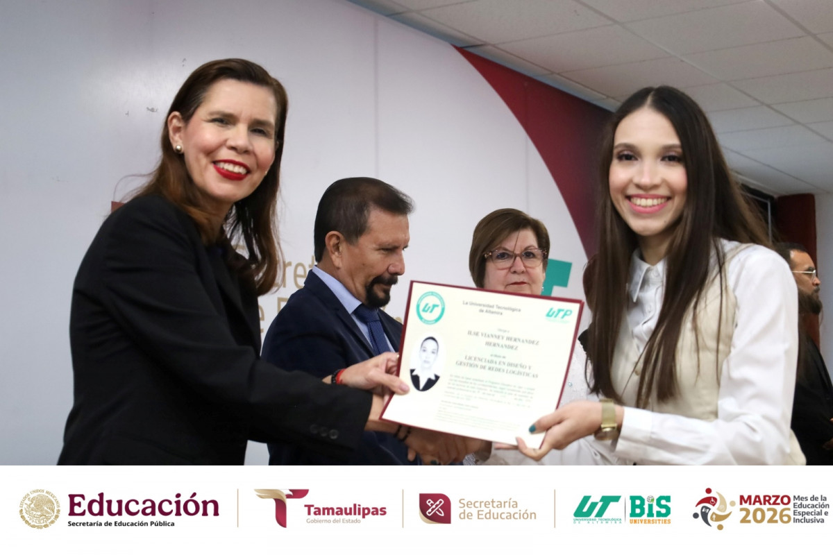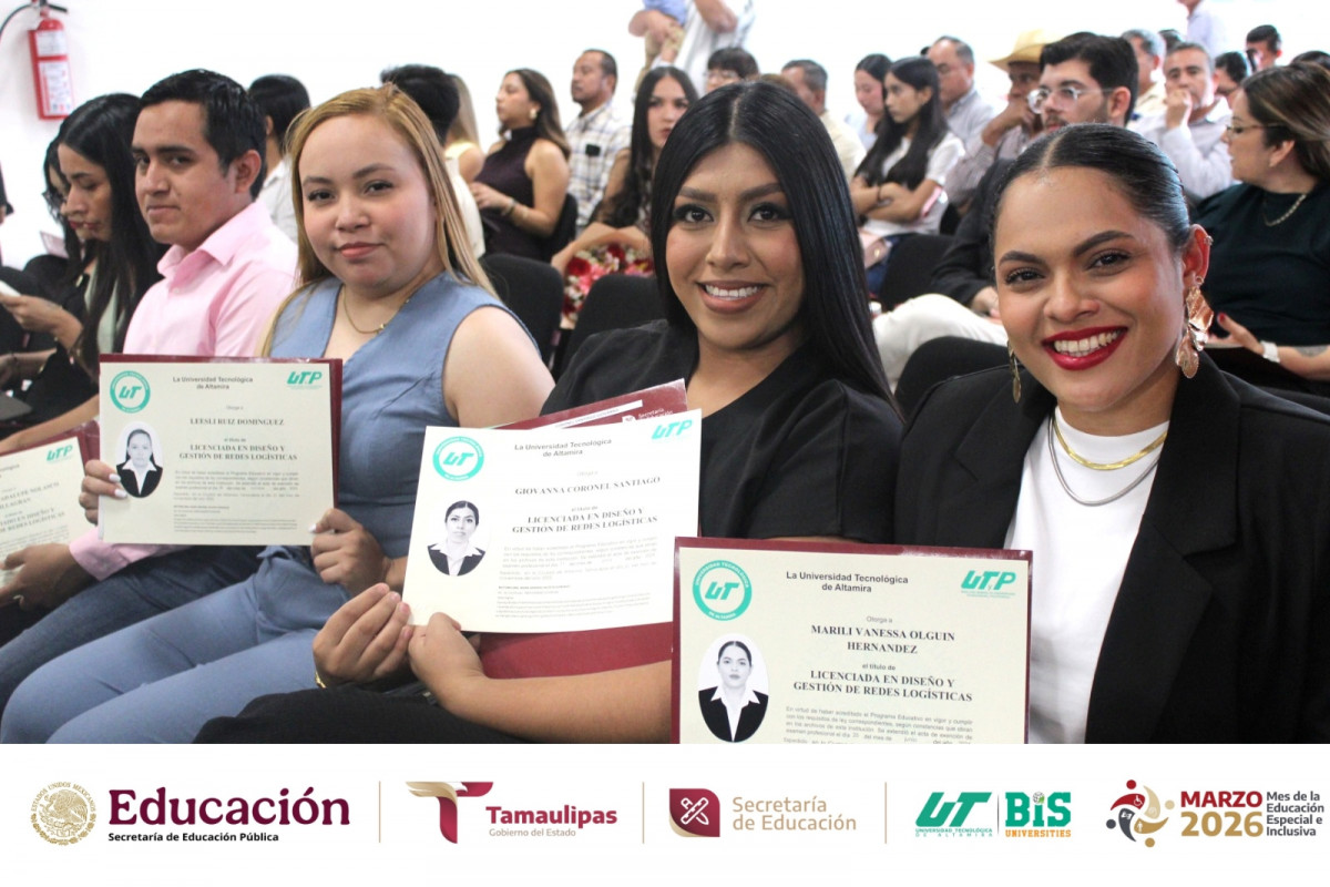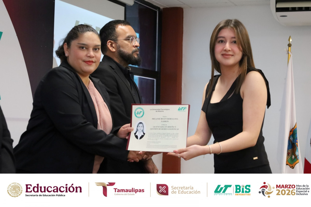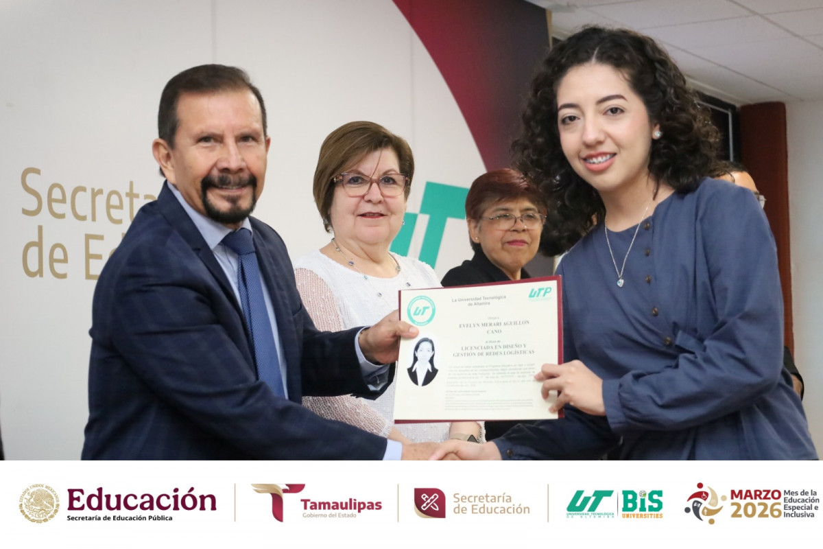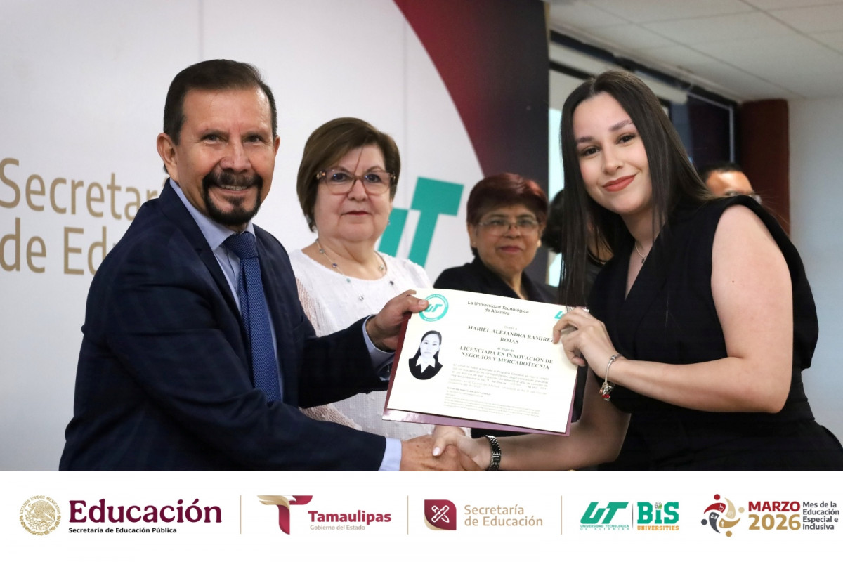 La Universidad Tecnológica de Altamira (UTALT) llevó a cabo la segunda entrega de títulos profesionales 2026 de nivel Ingeniería y Licenciatura en el Auditorio del Edificio T, en una ceremonia encabezada por la Dra. Mara Grassiel Acosta González, rectora de la universidad, acompañada por su cuerpo directivo académico y administrativo.