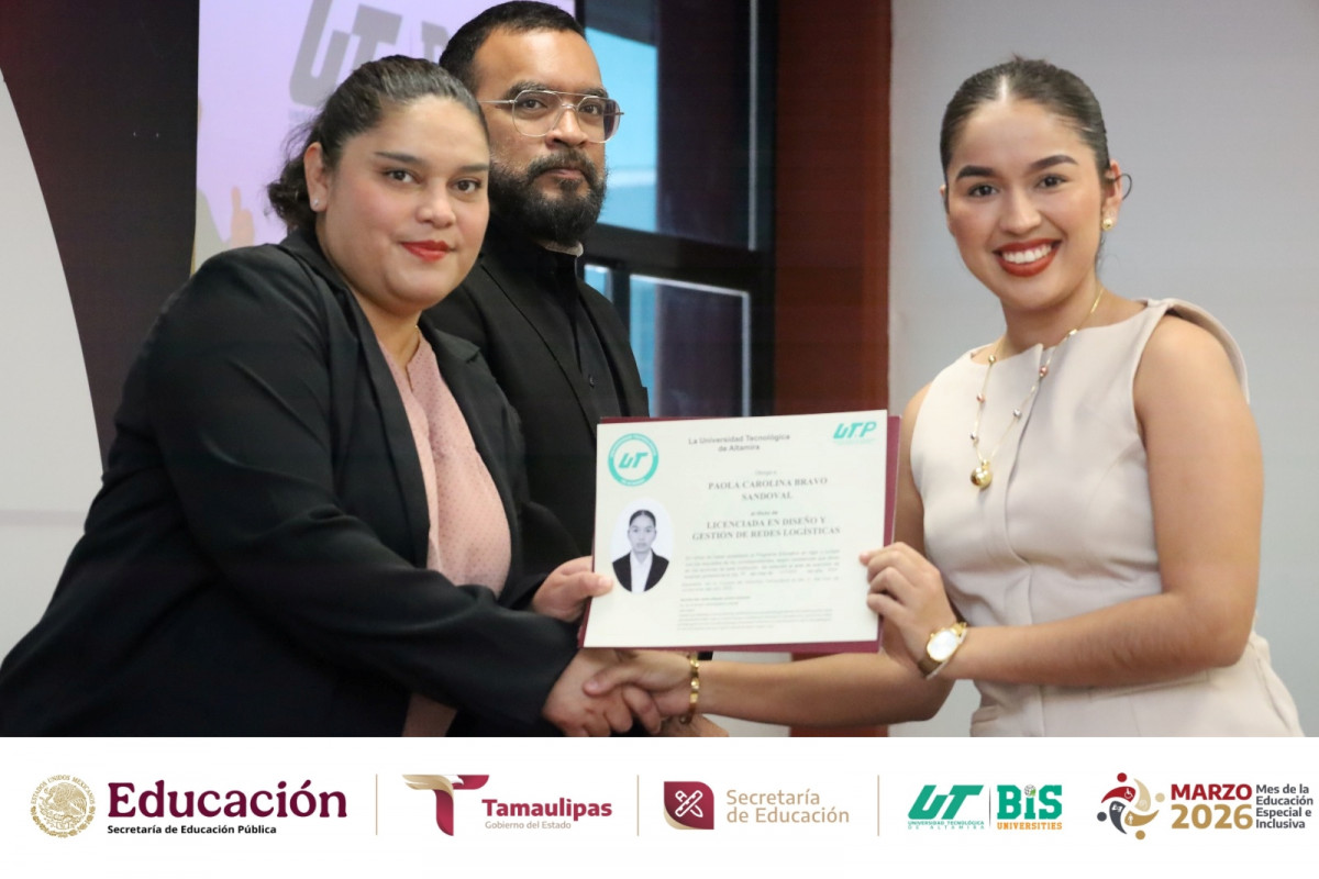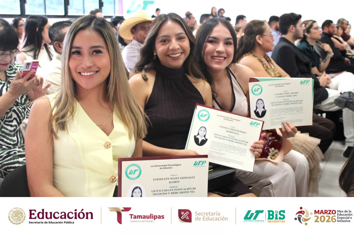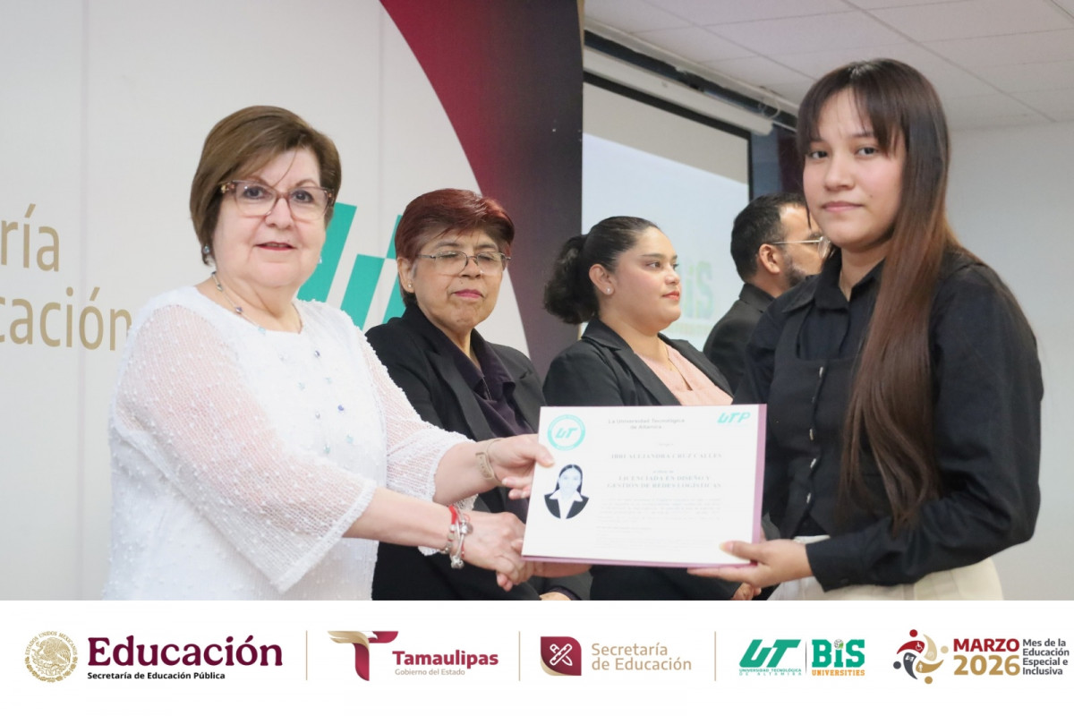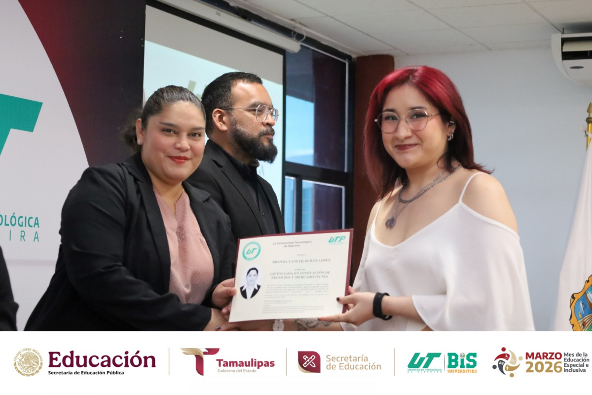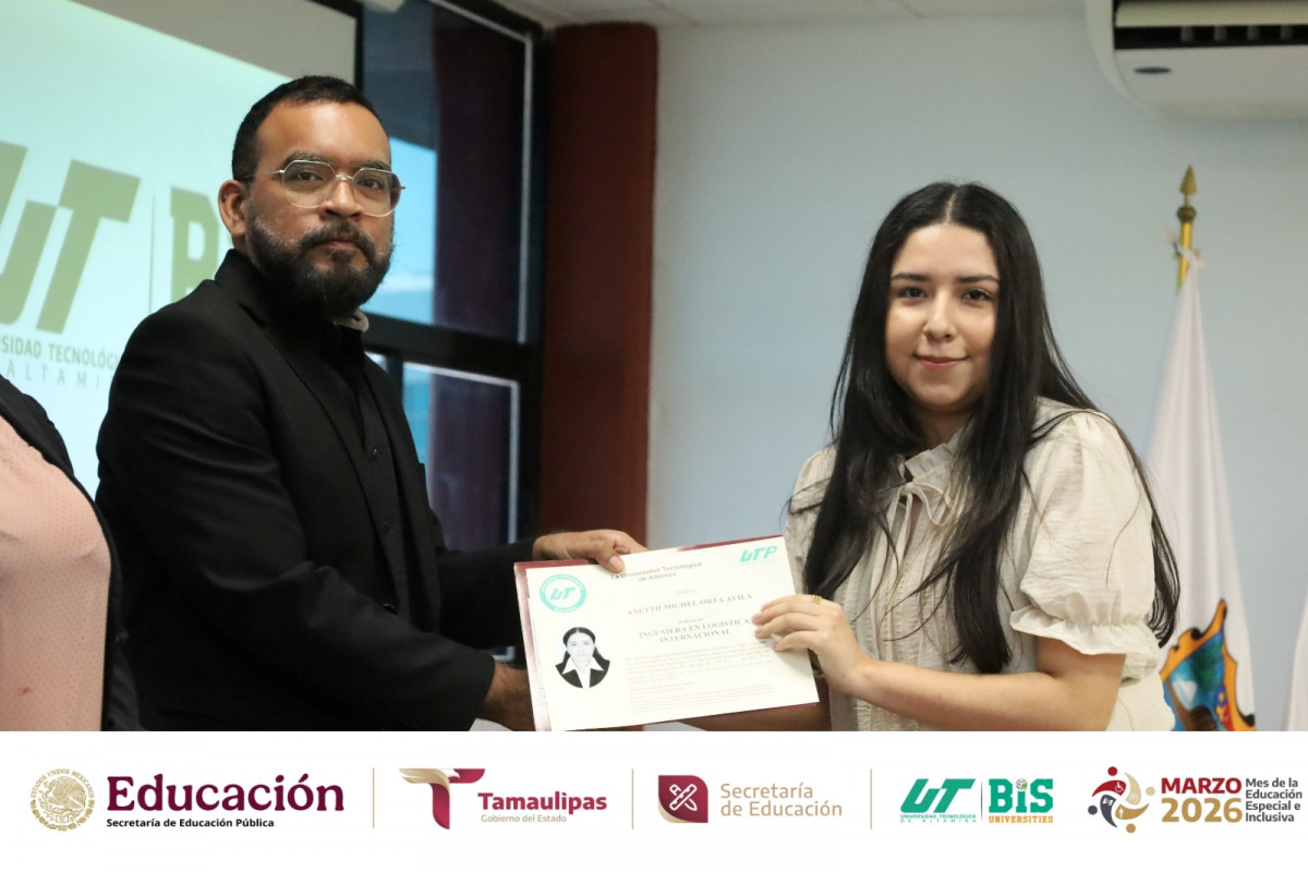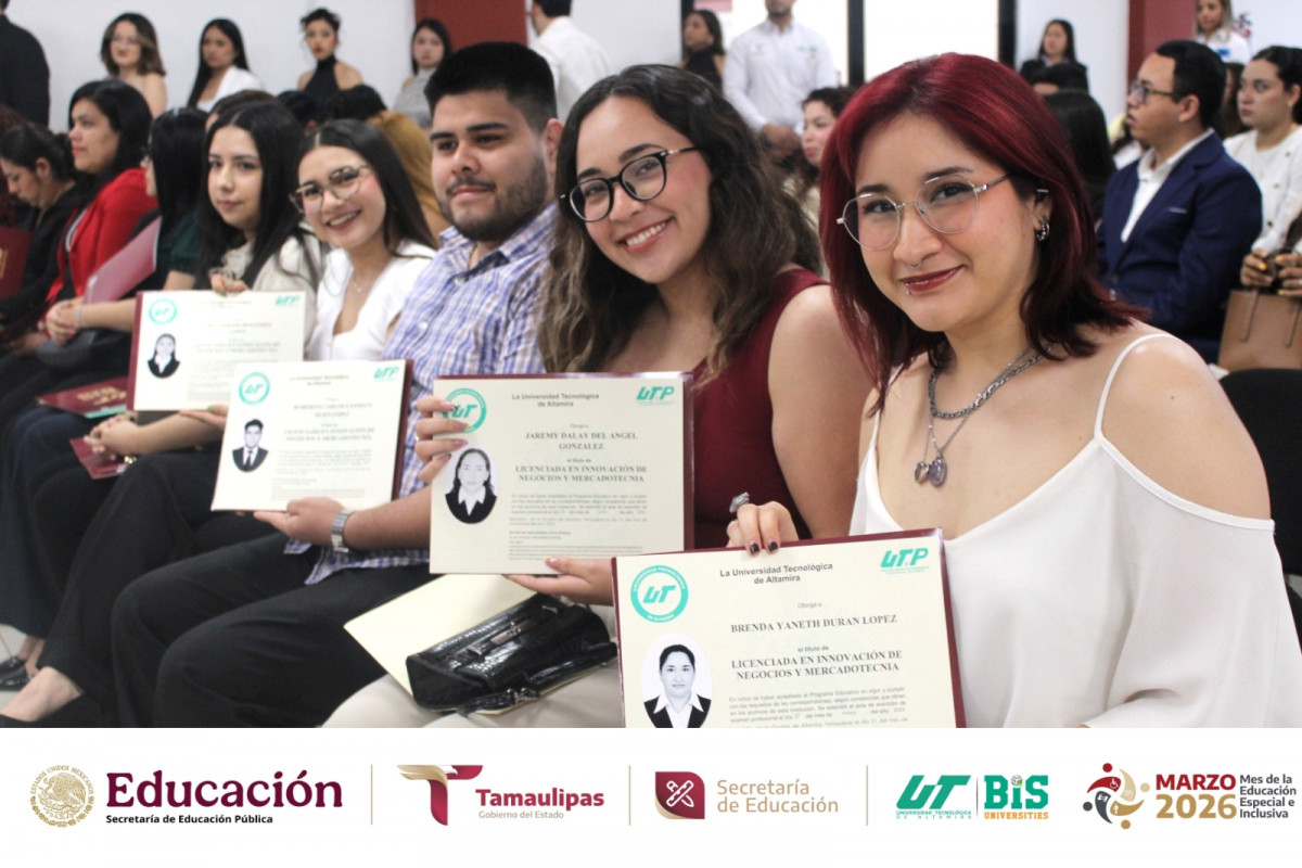 La Universidad Tecnológica de Altamira (UTALT) llevó a cabo la segunda entrega de títulos profesionales 2026 de nivel Ingeniería y Licenciatura en el Auditorio del Edificio T, en una ceremonia encabezada por la Dra. Mara Grassiel Acosta González, rectora de la universidad, acompañada por su cuerpo directivo académico y administrativo.