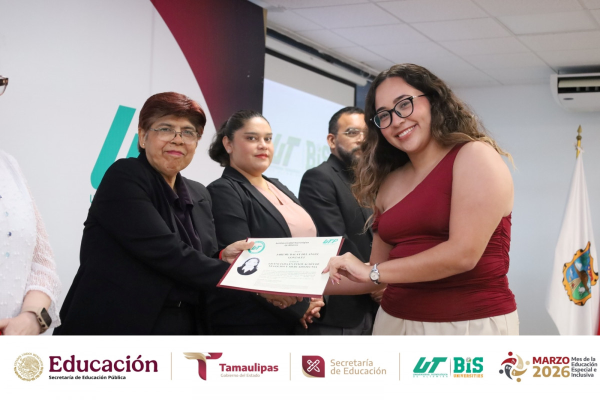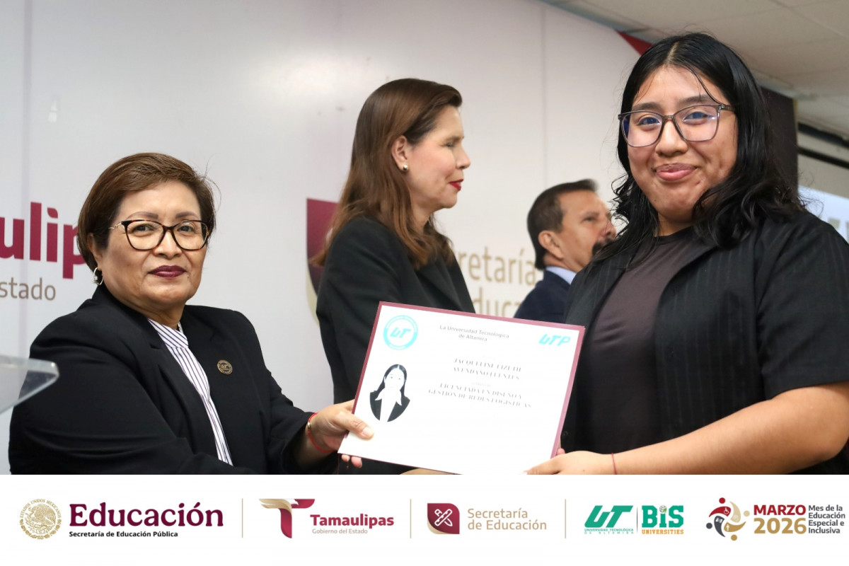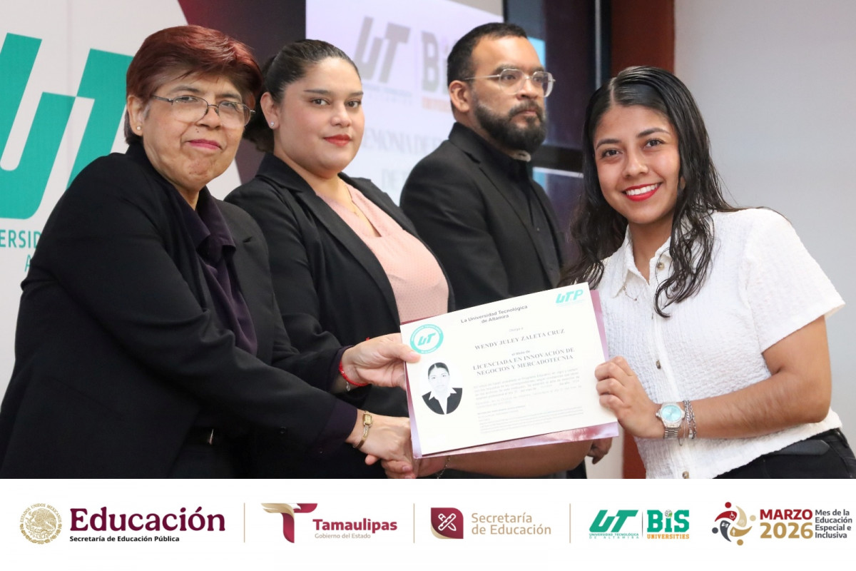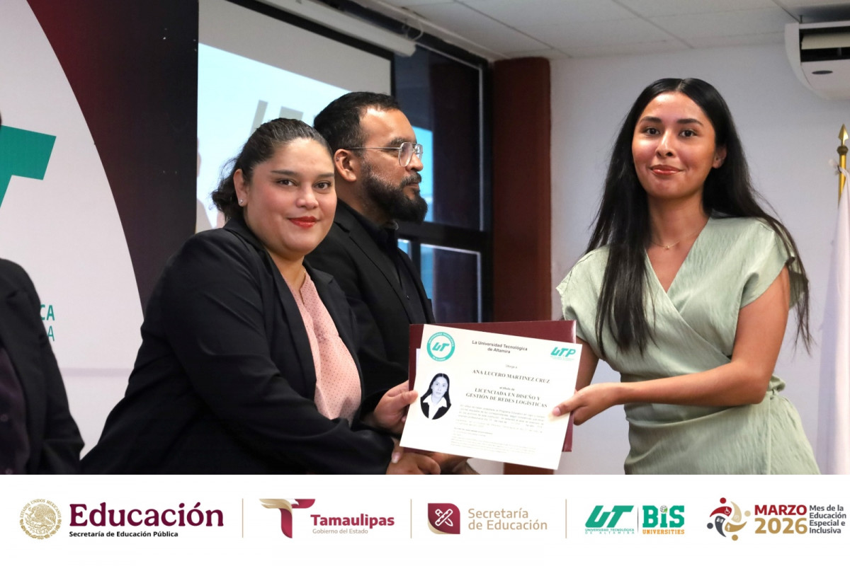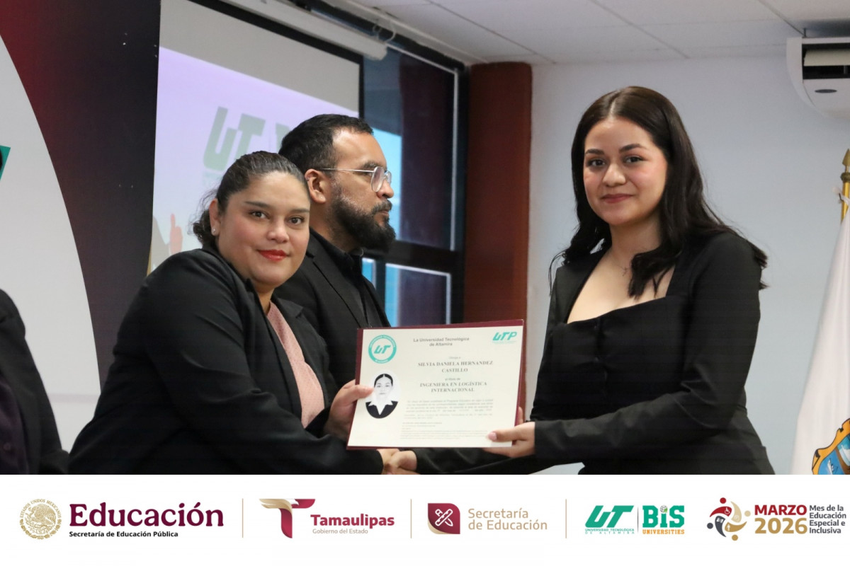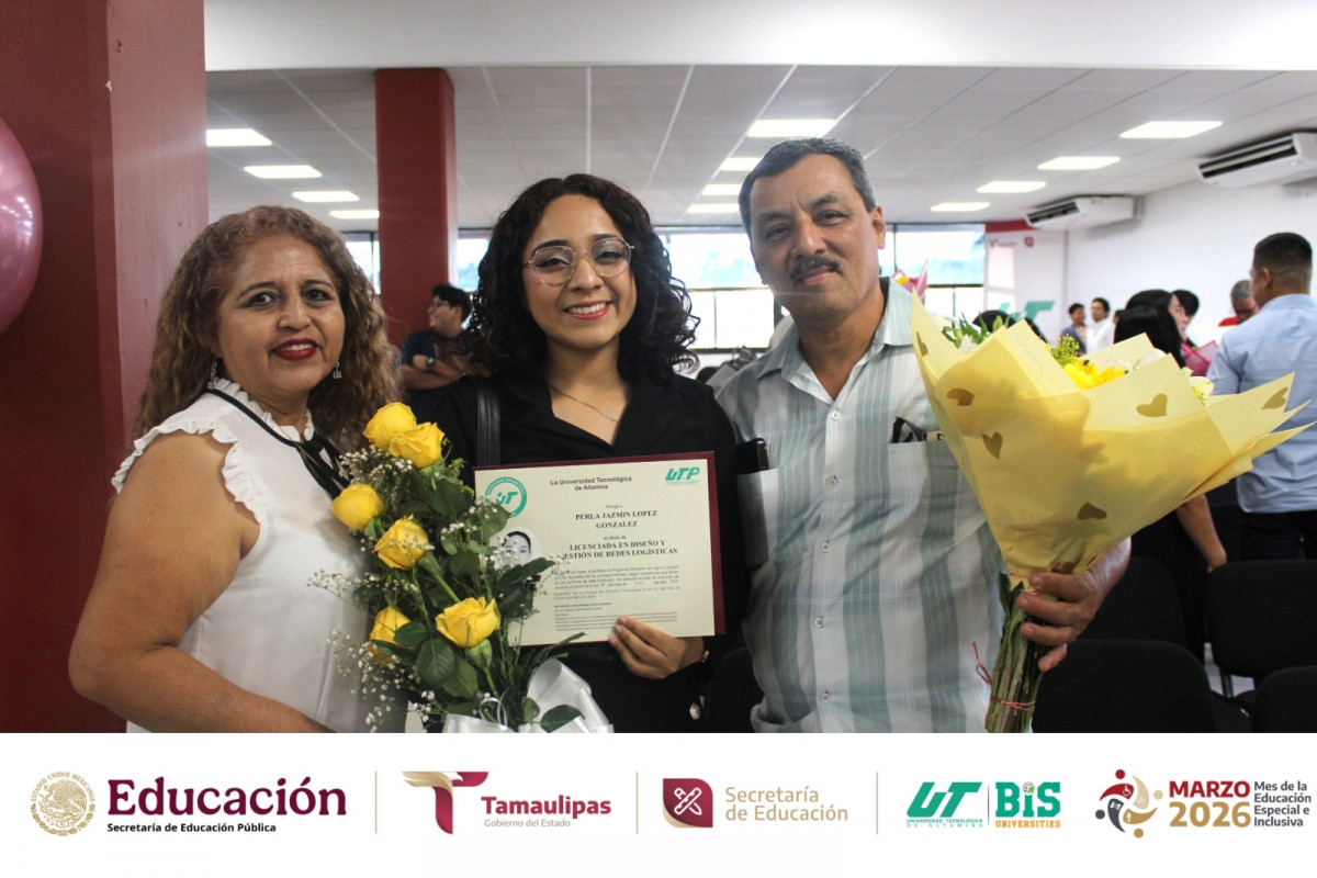 La Universidad Tecnológica de Altamira (UTALT) llevó a cabo la segunda entrega de títulos profesionales 2026 de nivel Ingeniería y Licenciatura en el Auditorio del Edificio T, en una ceremonia encabezada por la Dra. Mara Grassiel Acosta González, rectora de la universidad, acompañada por su cuerpo directivo académico y administrativo.