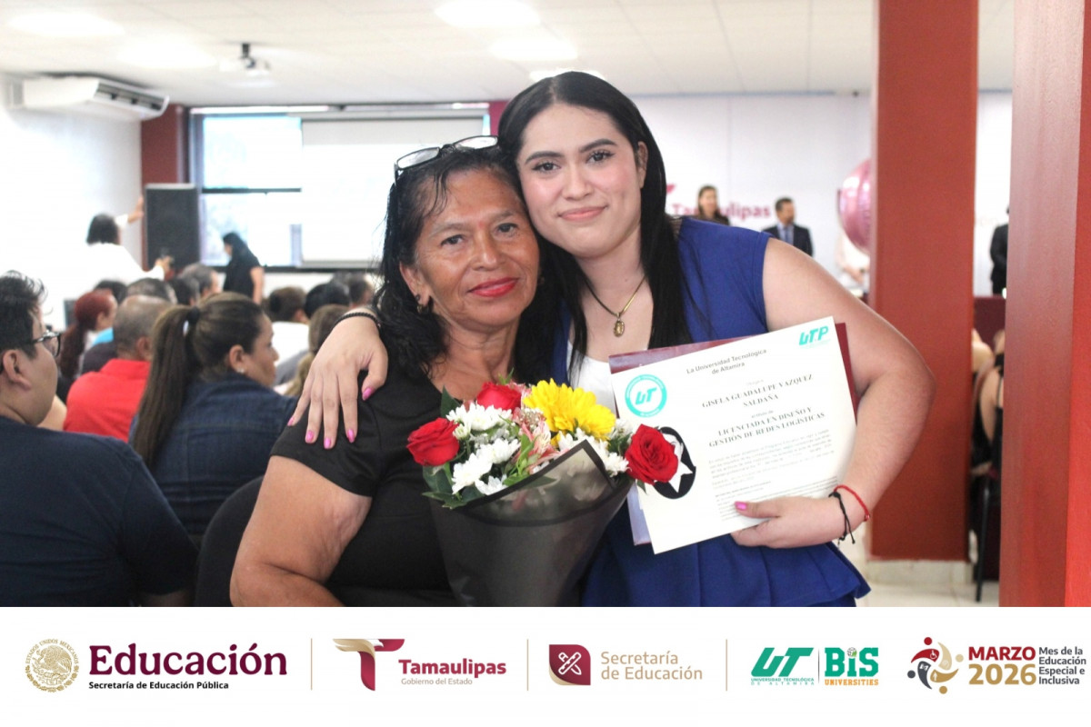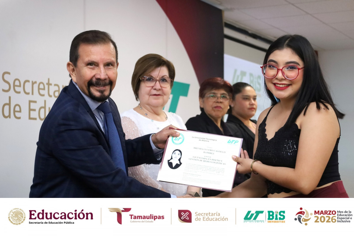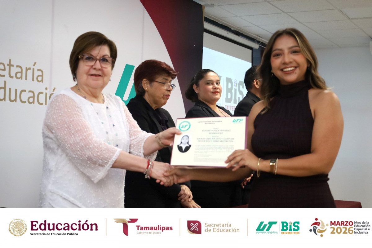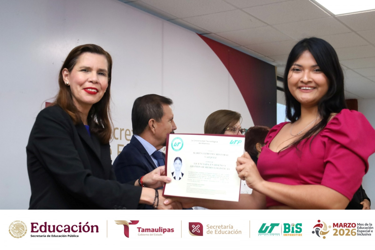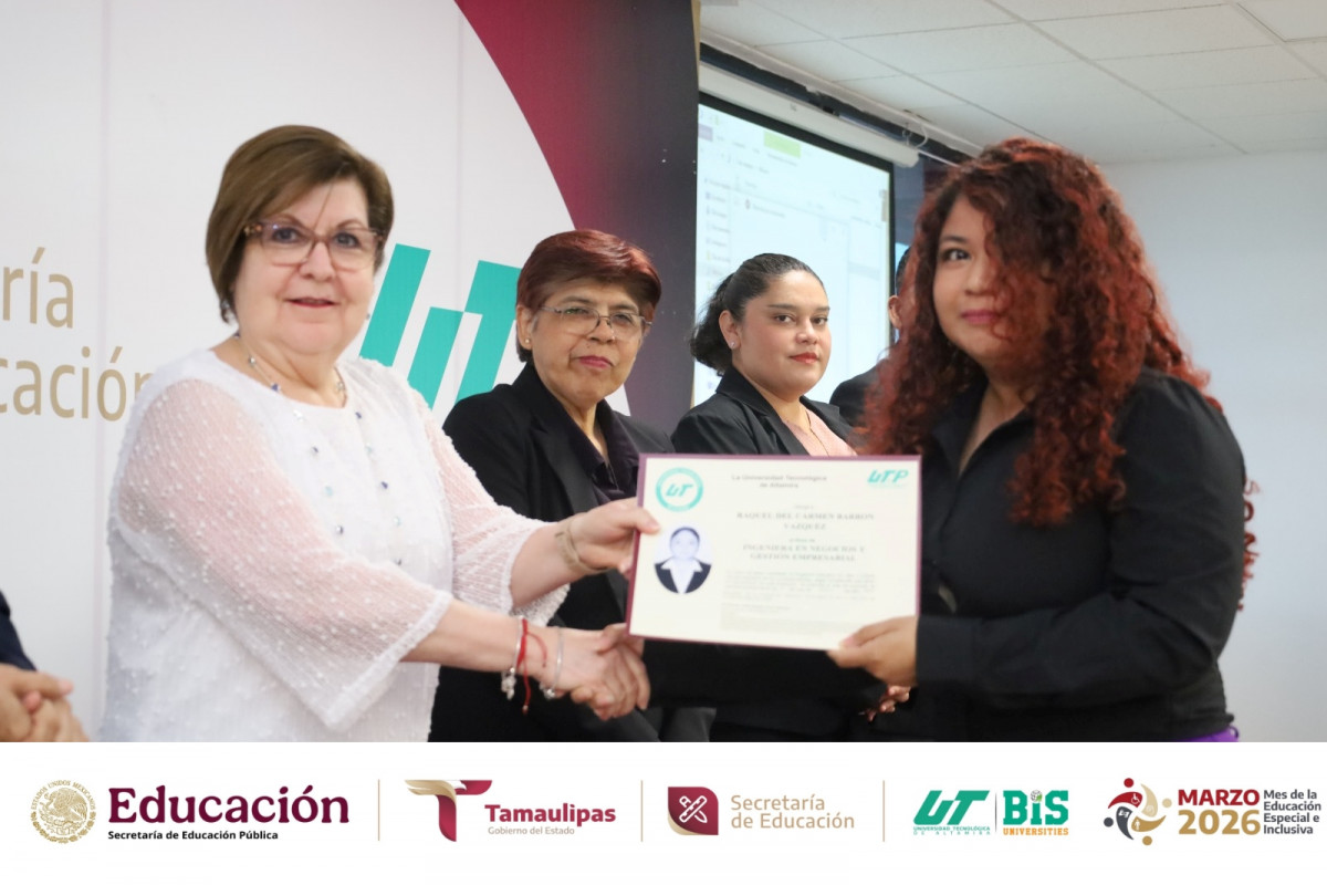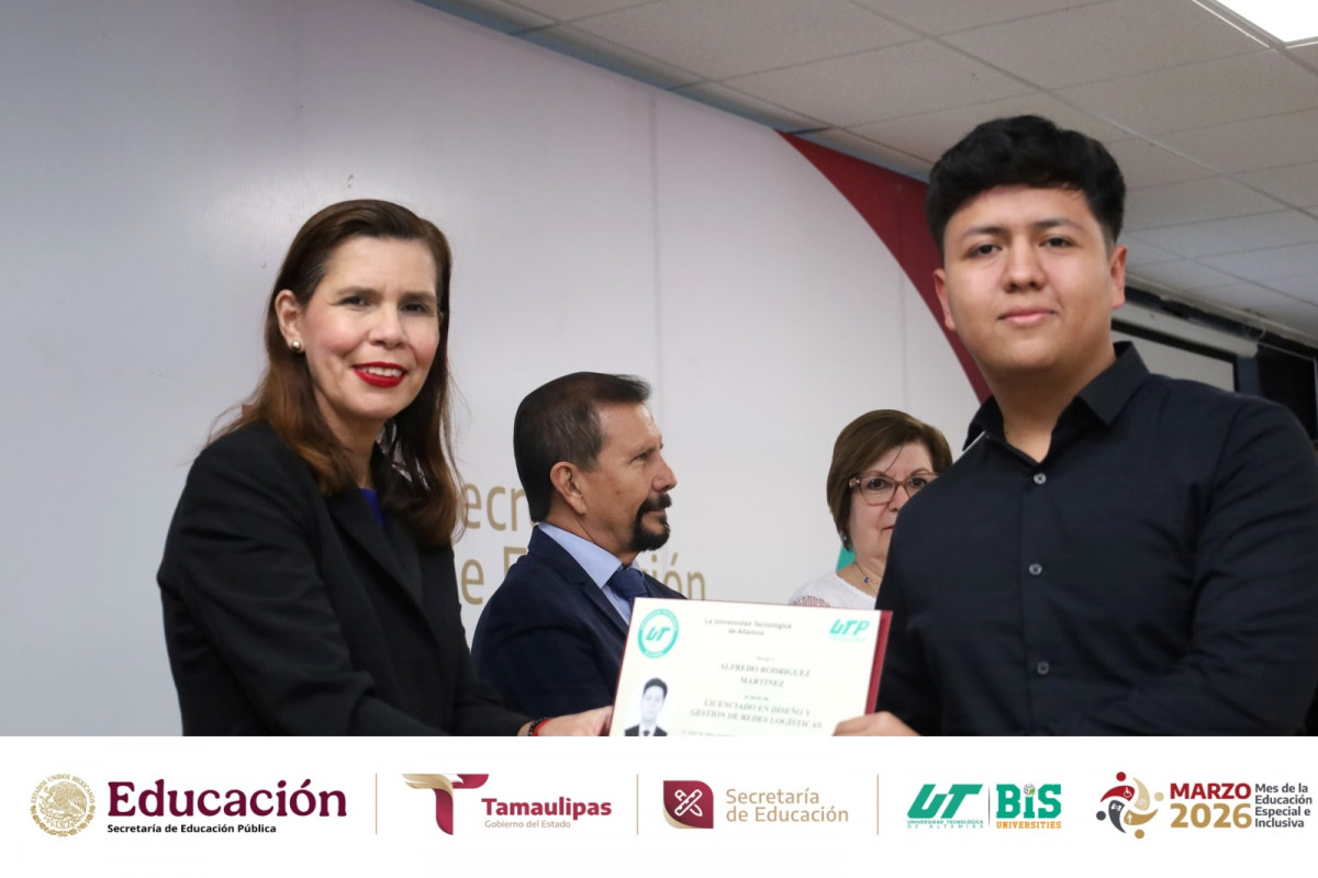La Universidad Tecnológica de Altamira (UTALT) llevó a cabo la segunda entrega de títulos profesionales 2026 de nivel Ingeniería y Licenciatura en el Auditorio del Edificio T, en una ceremonia encabezada por la Dra. Mara Grassiel Acosta González, rectora de la universidad, acompañada por su cuerpo directivo académico y administrativo.