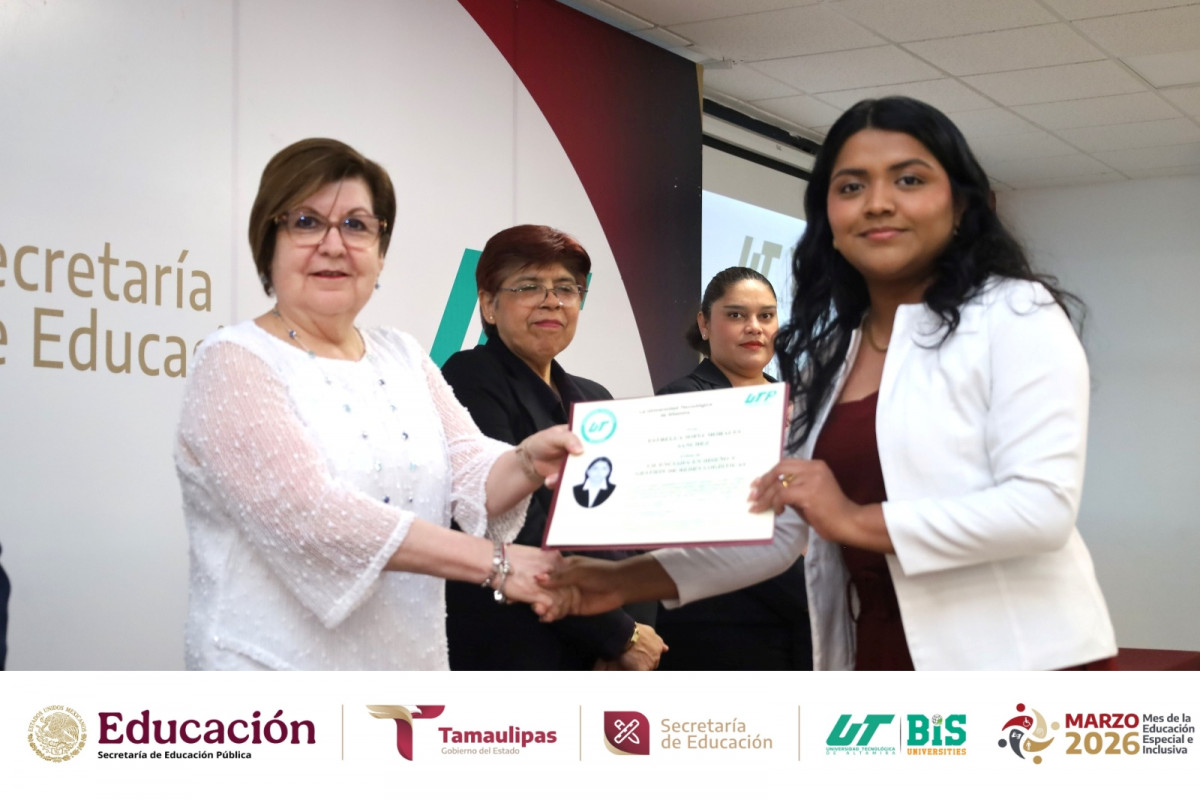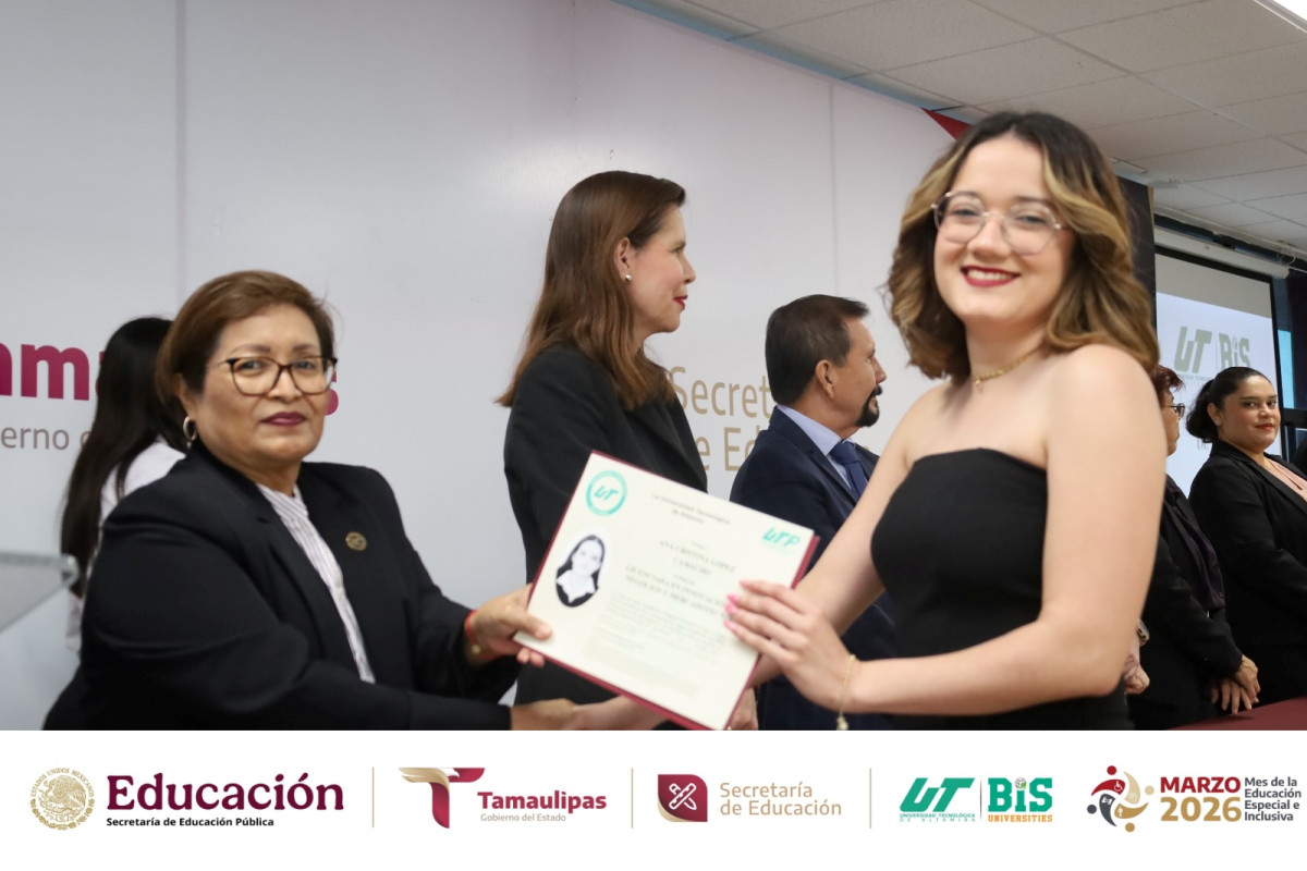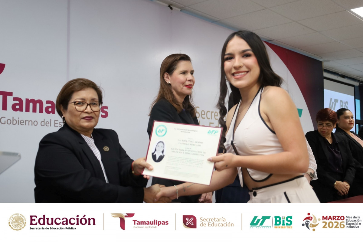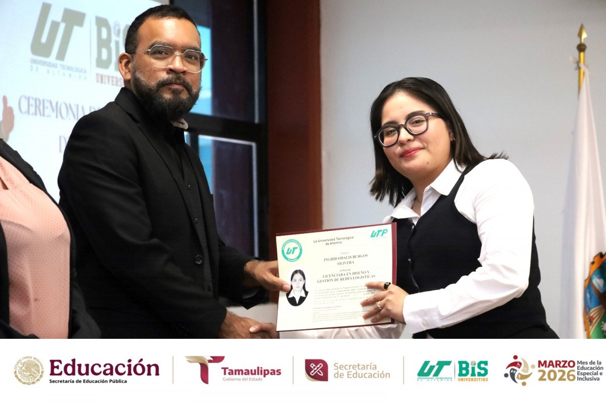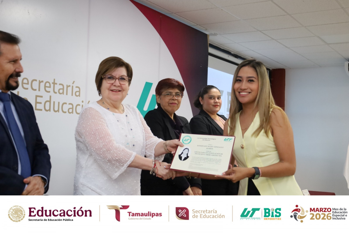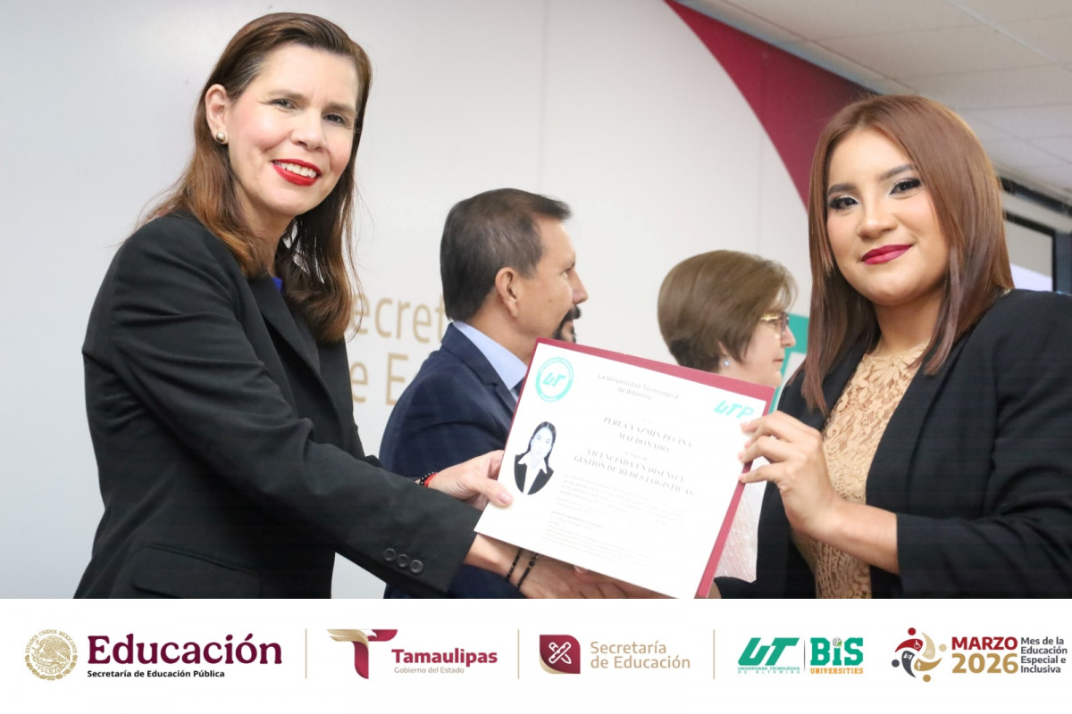 La Universidad Tecnológica de Altamira (UTALT) llevó a cabo la segunda entrega de títulos profesionales 2026 de nivel Ingeniería y Licenciatura en el Auditorio del Edificio T, en una ceremonia encabezada por la Dra. Mara Grassiel Acosta González, rectora de la universidad, acompañada por su cuerpo directivo académico y administrativo.