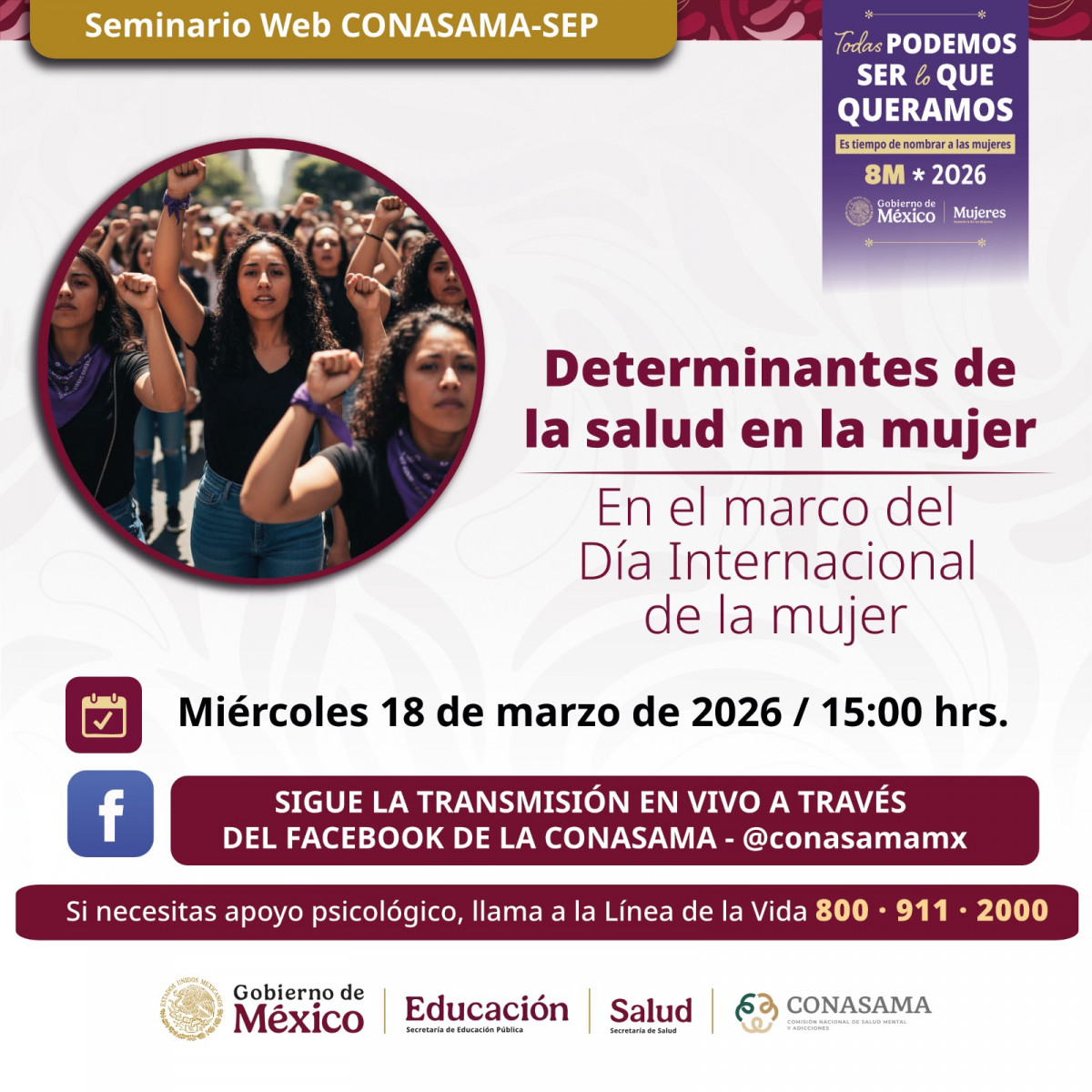 La Universidad Tecnológica de Altamira (UTALT) invita a su comunidad a seguir el Seminario Web “Determinantes de la salud en la mujer”, organizado por la CONASAMA y la Secretaría de Educación Pública, en el marco del Día Internacional de la Mujer.