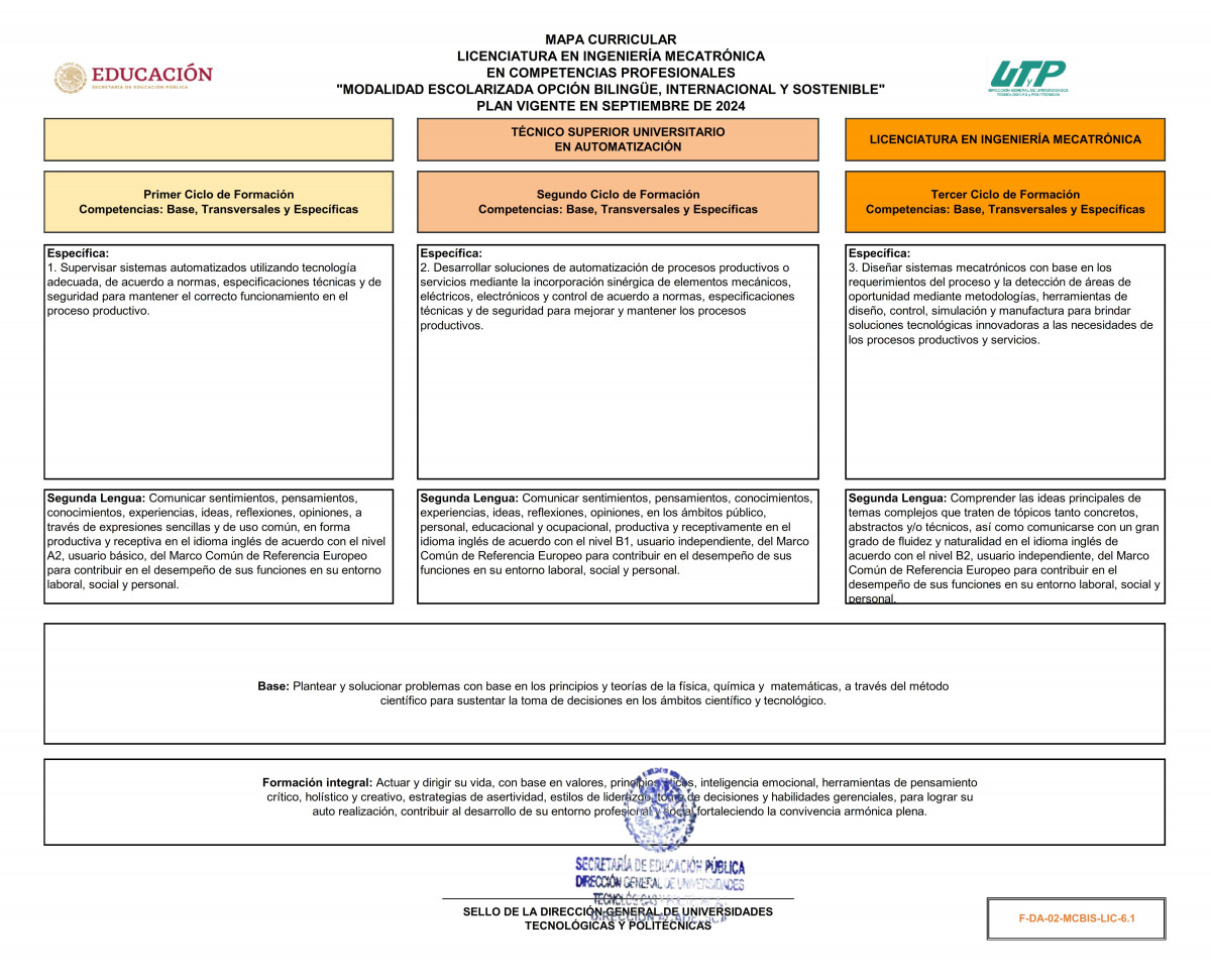 El Licenciado en Ingeniería en Mecatrónica BIS se distingue por poseer las competencias profesionales esenciales que respaldan su desempeño con éxito en el dinámico entorno laboral, abarcando tanto el ámbito local como el regional y nacional. Este perfil integral no sólo se ajusta a las demandas actuales del sector, sino que también anticipa y se adapta a las transformaciones y desafíos emergentes de la Licenciatura en Ingeniería Mecatrónica BIS. Su capacidad para integrar conocimientos técnicos especializados, habilidades analíticas y una visión innovadora lo posiciona como un profesional altamente cualificado y preparado para contribuir significativamente al avance de la disciplina y a la resolución eficiente de problemáticas complejas en distintos contextos.